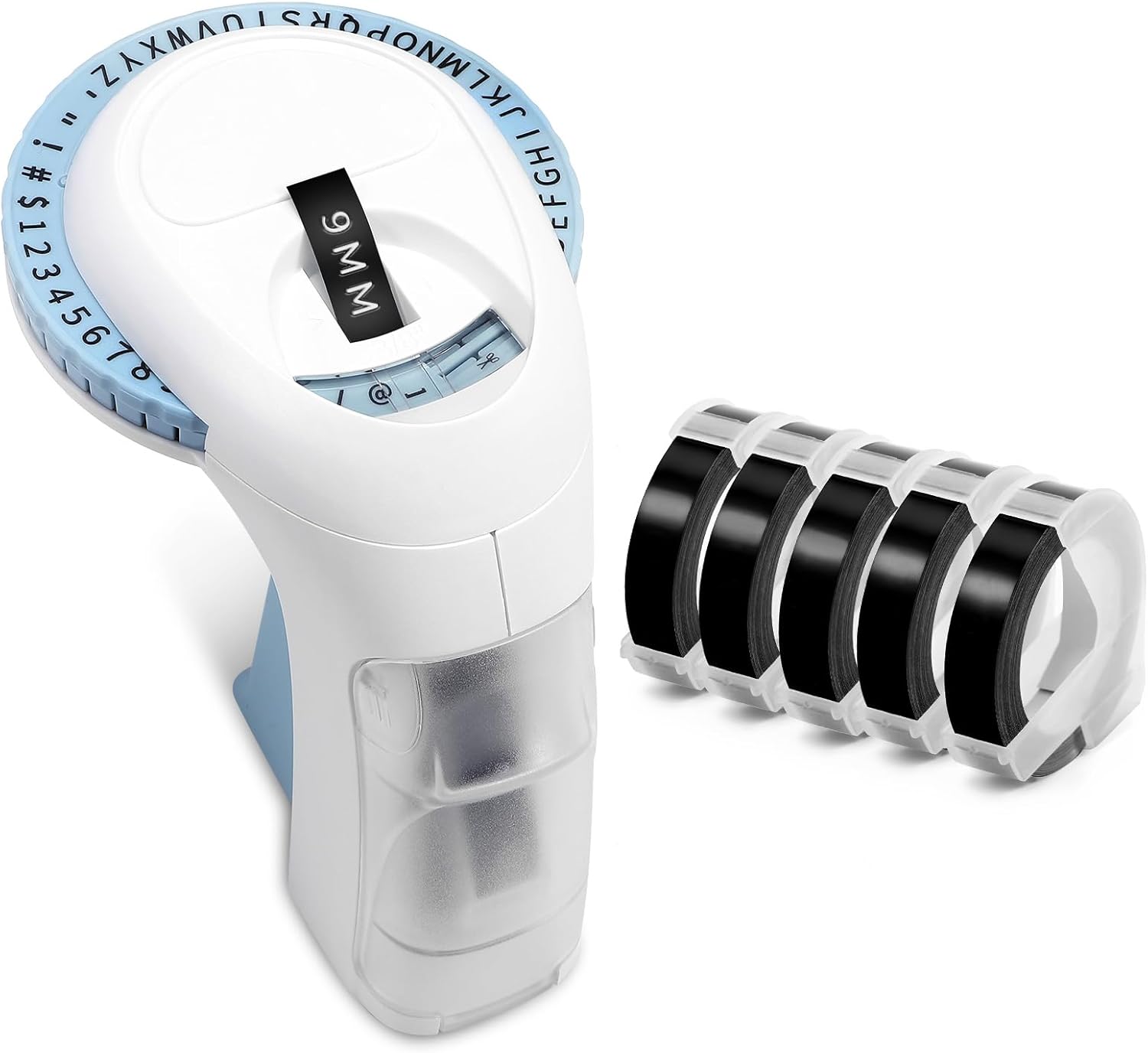 Label KINGDOM Embossing Label Maker with 5 Rolls 3D Embossing Tape, Label Maker Embossing Portable Vintage 3D Embossing Label Printer Waterproof for Home Office School and DIY, Blue