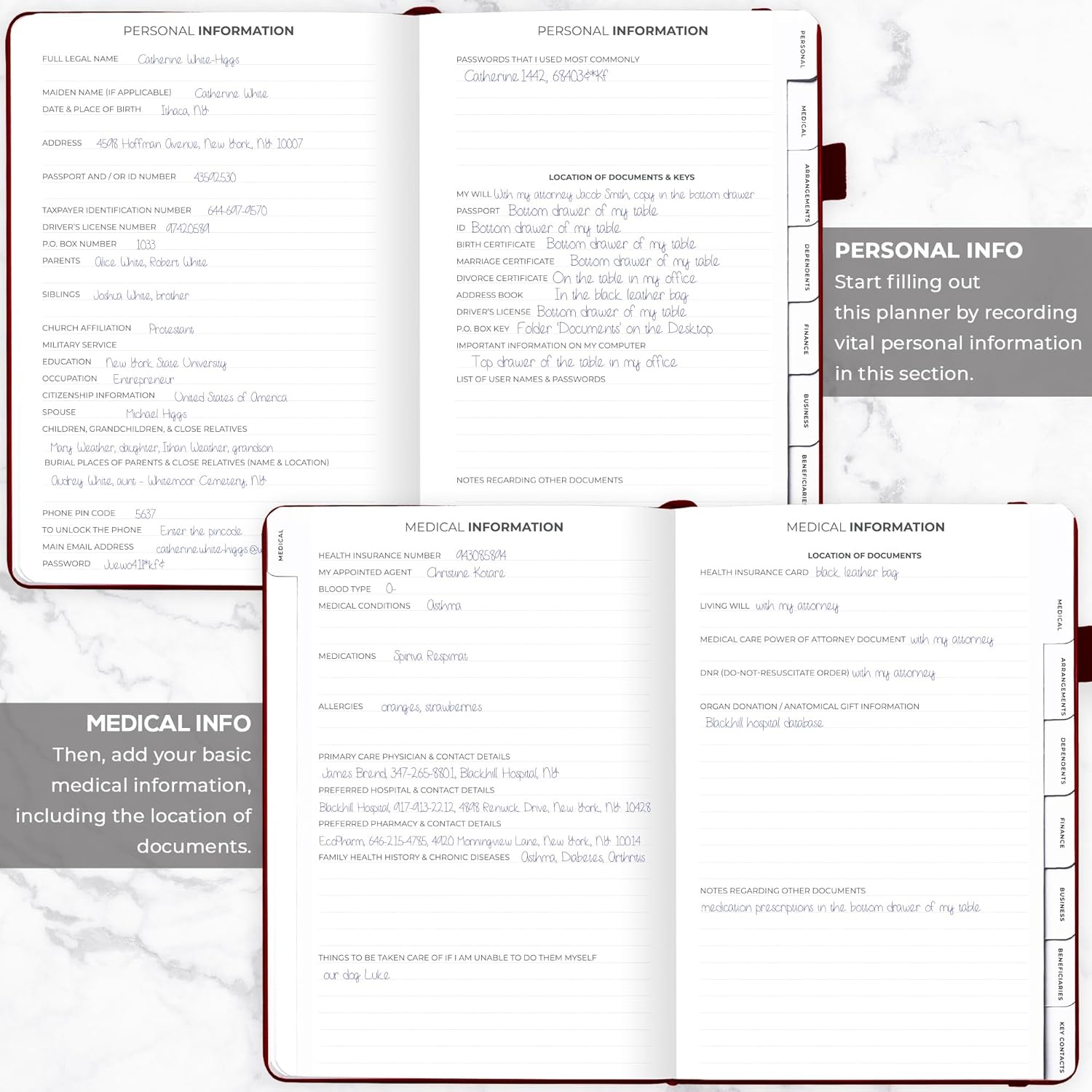 - PREPARE DETAILED INSTRUCTIONS TO GUIDE YOUR LOVED ONES: This guided final arrangements planner is an easy-to-use tool for organizing all essential personal information, from medical data to passwords and financial records.