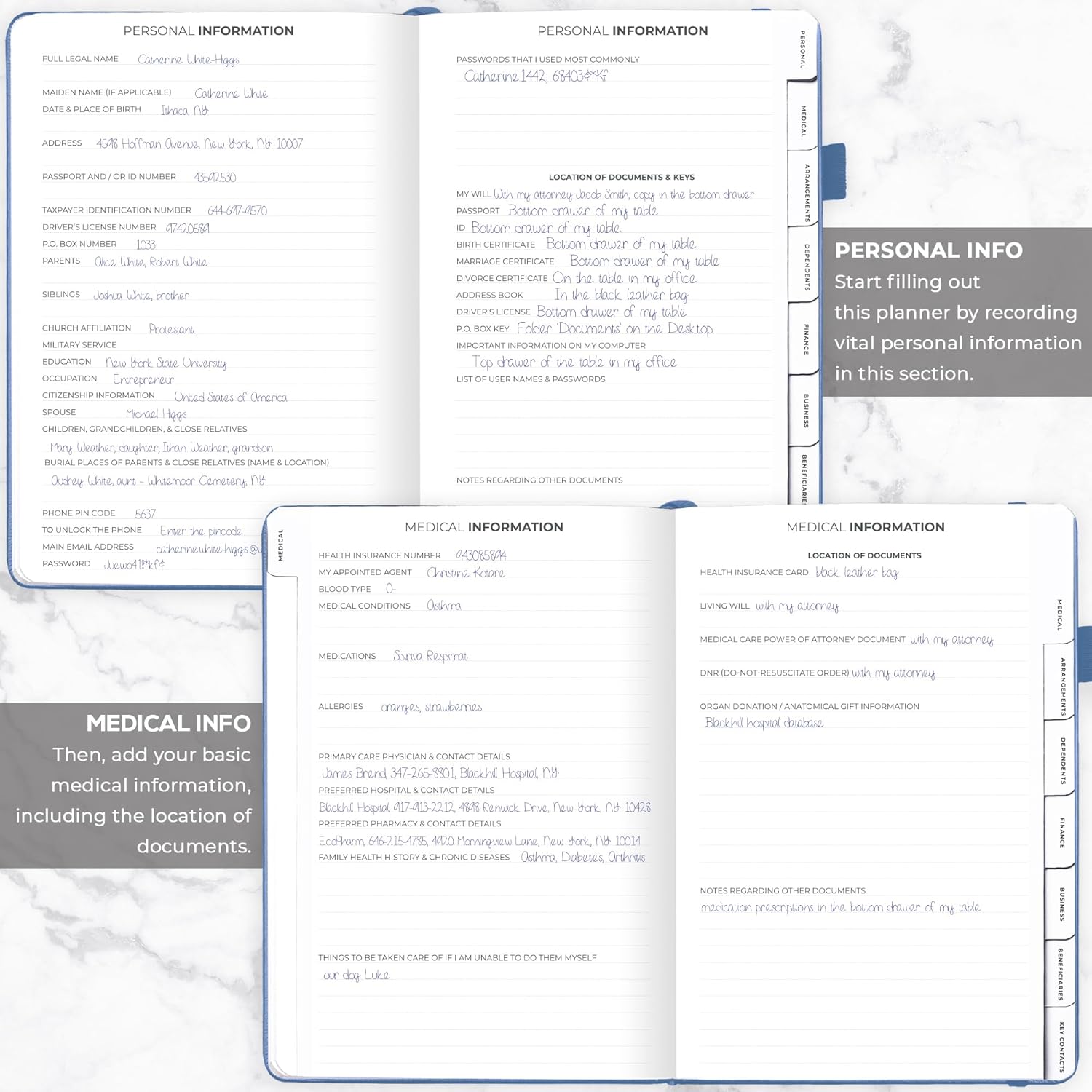- PREPARE DETAILED INSTRUCTIONS TO GUIDE YOUR LOVED ONES: This guided final arrangements planner is an easy-to-use tool for organizing all essential personal information, from medical data to passwords and financial records.