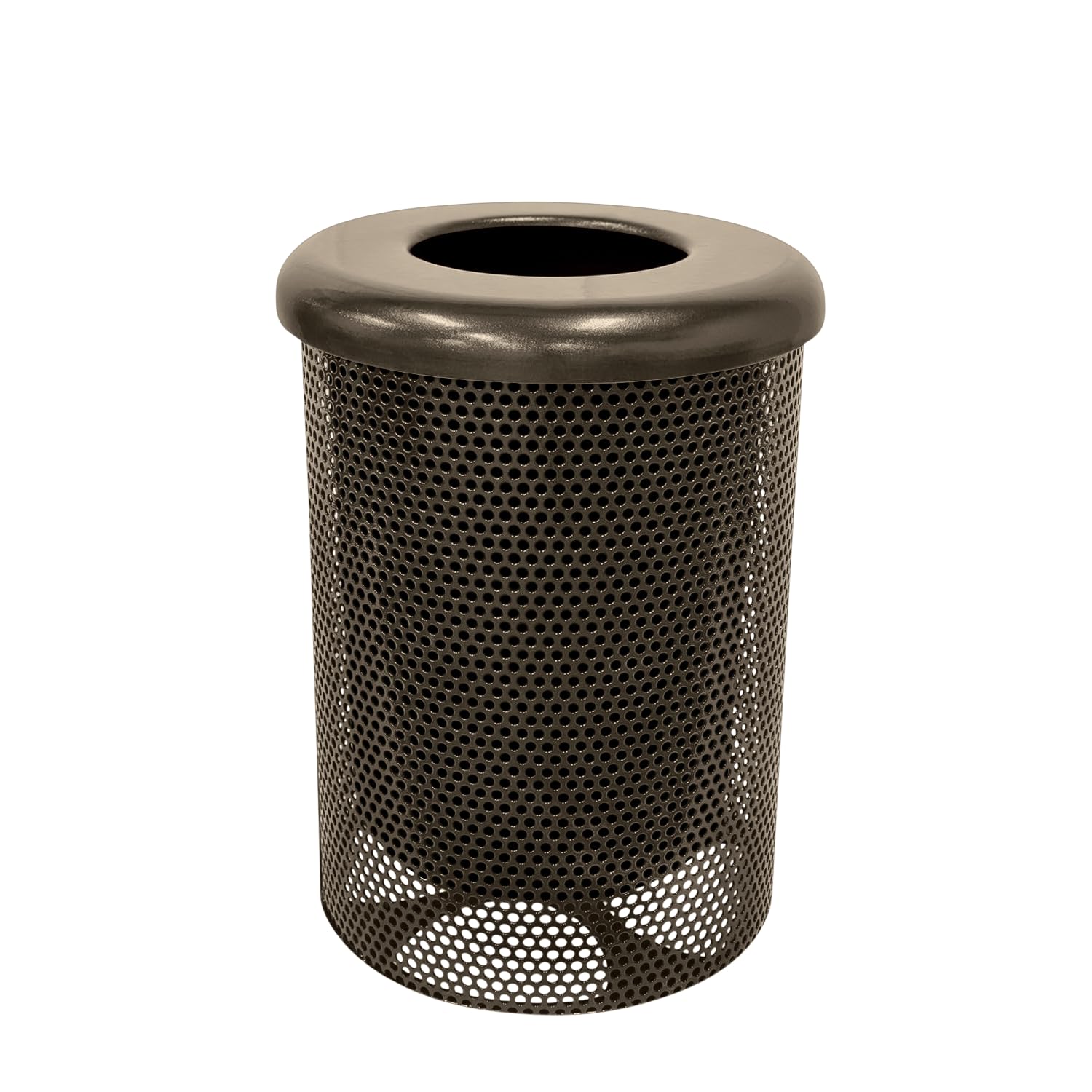 RFT-P-TXTBRW Heavy Duty Round Trash Receptacle with Flat Top, Liner Included, 32 Gallon, Textured Brown, Made in America