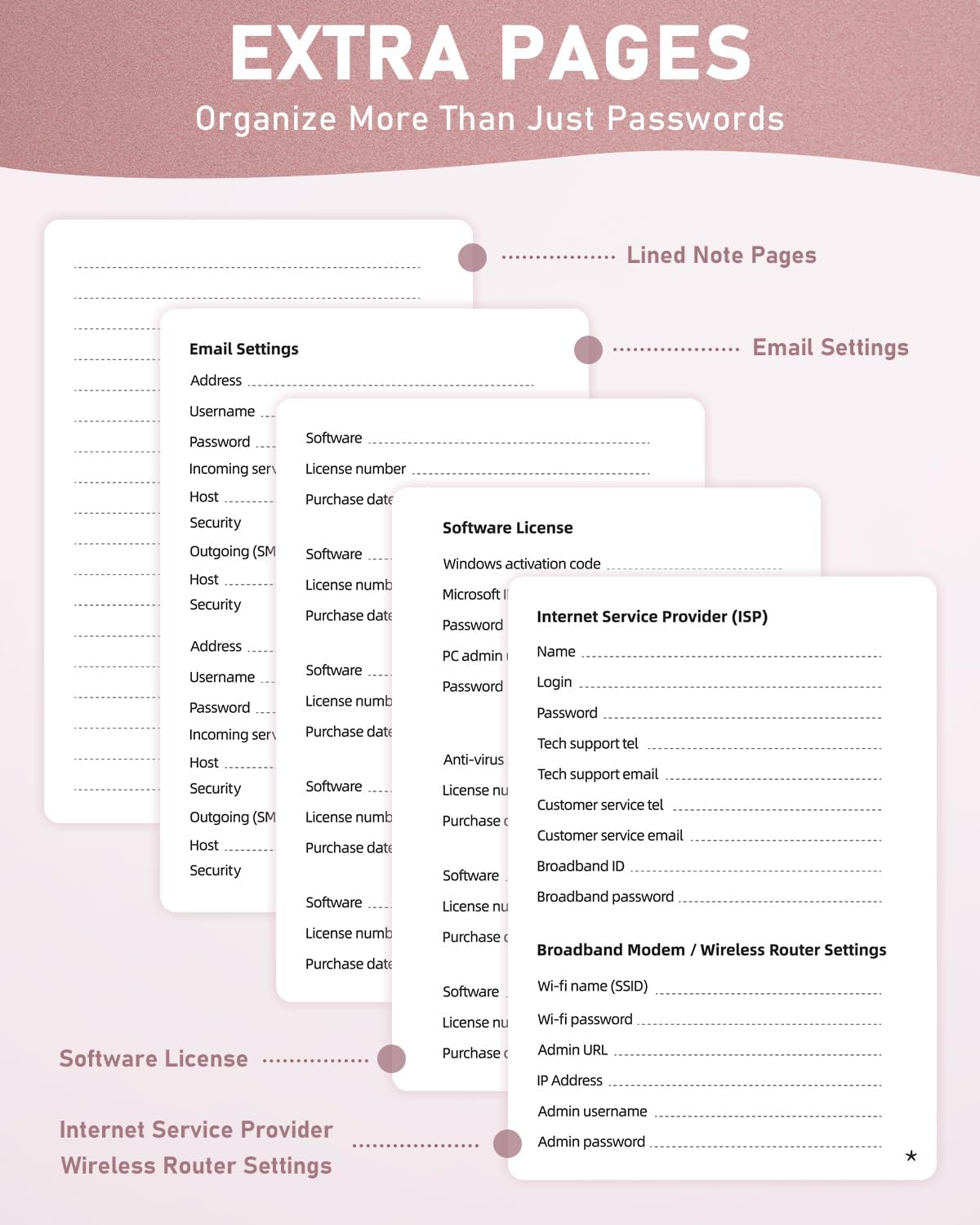 - Never Forget Passwords Again: Record 468 passwords, with space for updates; Say goodbye to password woes! Secure Pass Keeper Book keeps you covered