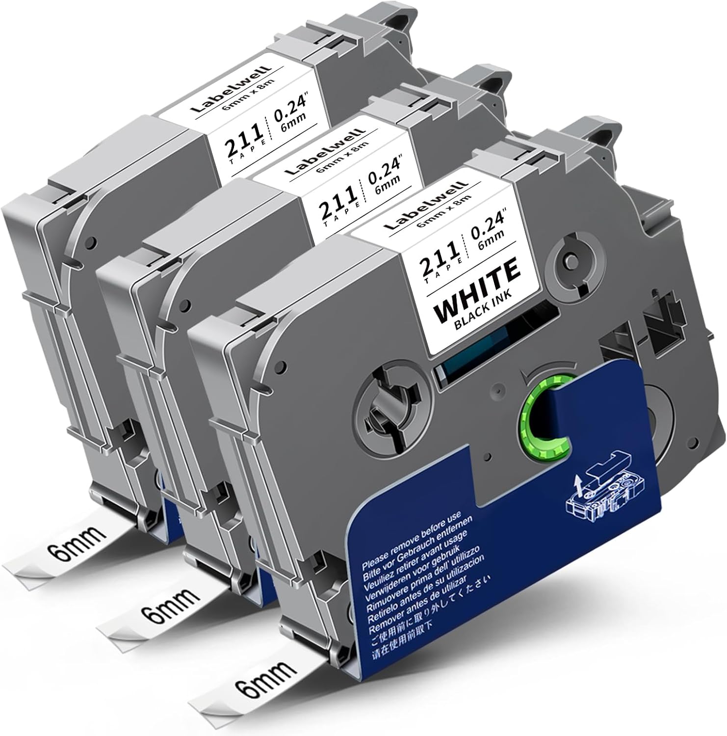 - Package Contents: 3-Pack Replacement for Brother P Touch Label Tape TZe-211 TZ211 TZe211, Black on White (Black Ink on White Tape)