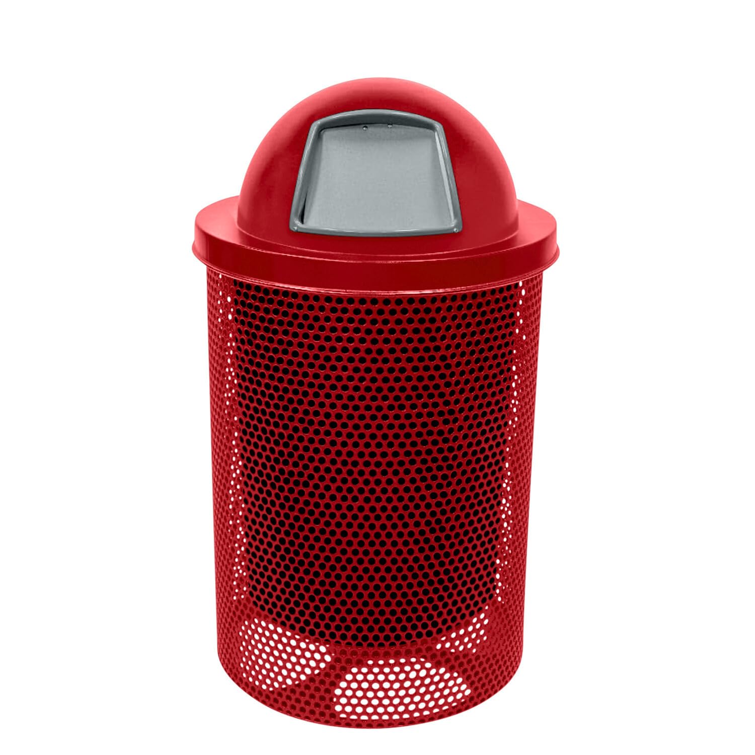 RDT-P-TXTRED Heavy Duty Round Trash Receptacle with Dome Top, Liner Included, 32 Gallon, Textured Red, Made in America