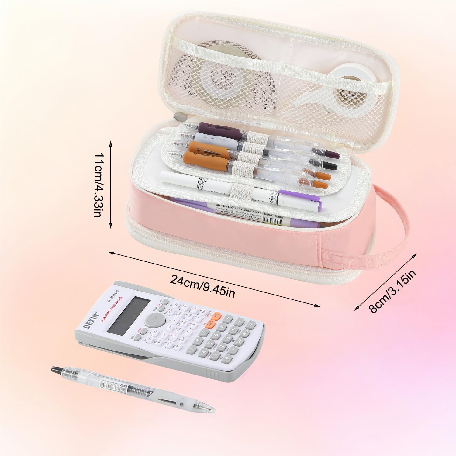 Pencil Case Large Zipper Pencil Pouch for Girls Kids Teens Adults Aesthetic Pencil Bag Stationery Organizer Pen Pencil Case with Handle for School Pink
