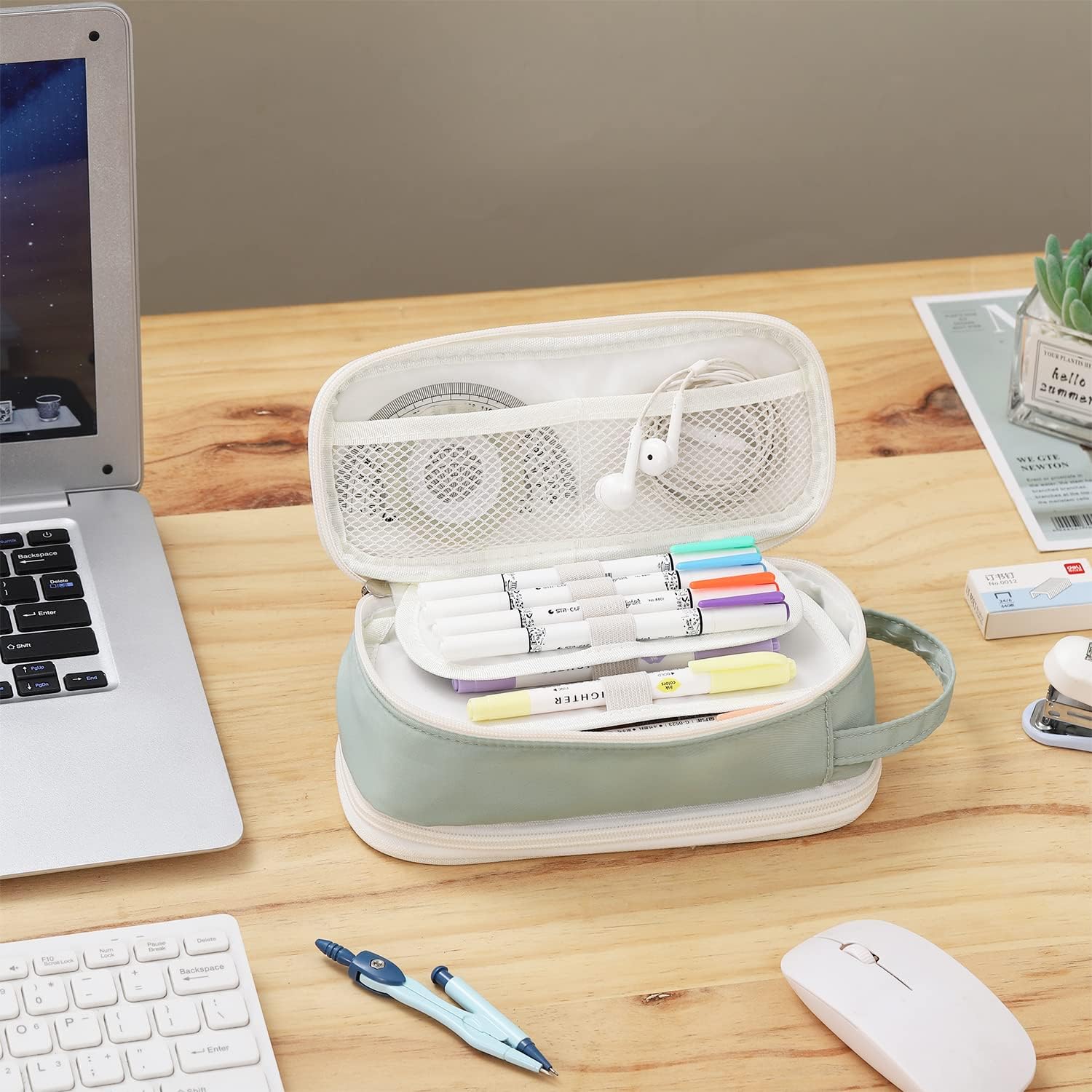 Dugio Big Pencil Case for Girls Teens Kids Zipper Pencil Pouch with Handle Organizer Pencil Bag Aesthetic Pencil Pen Case for School Green