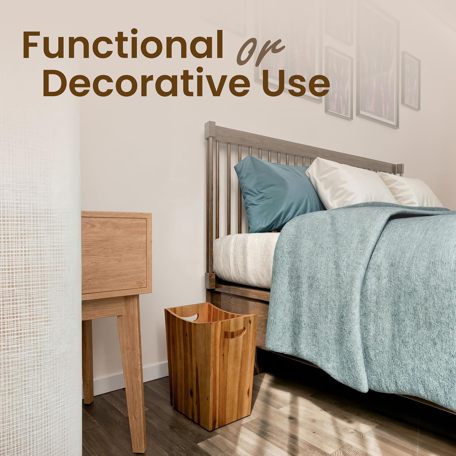 2 Gallon Acacia Wooden Bin, Wastebasket – Small Trash Can, Decorative Bathroom Trash Can, Waste Basket for Bedroom, Office Garbage Can, Wood Bathroom Accessories, Boho Bedroom Decor
