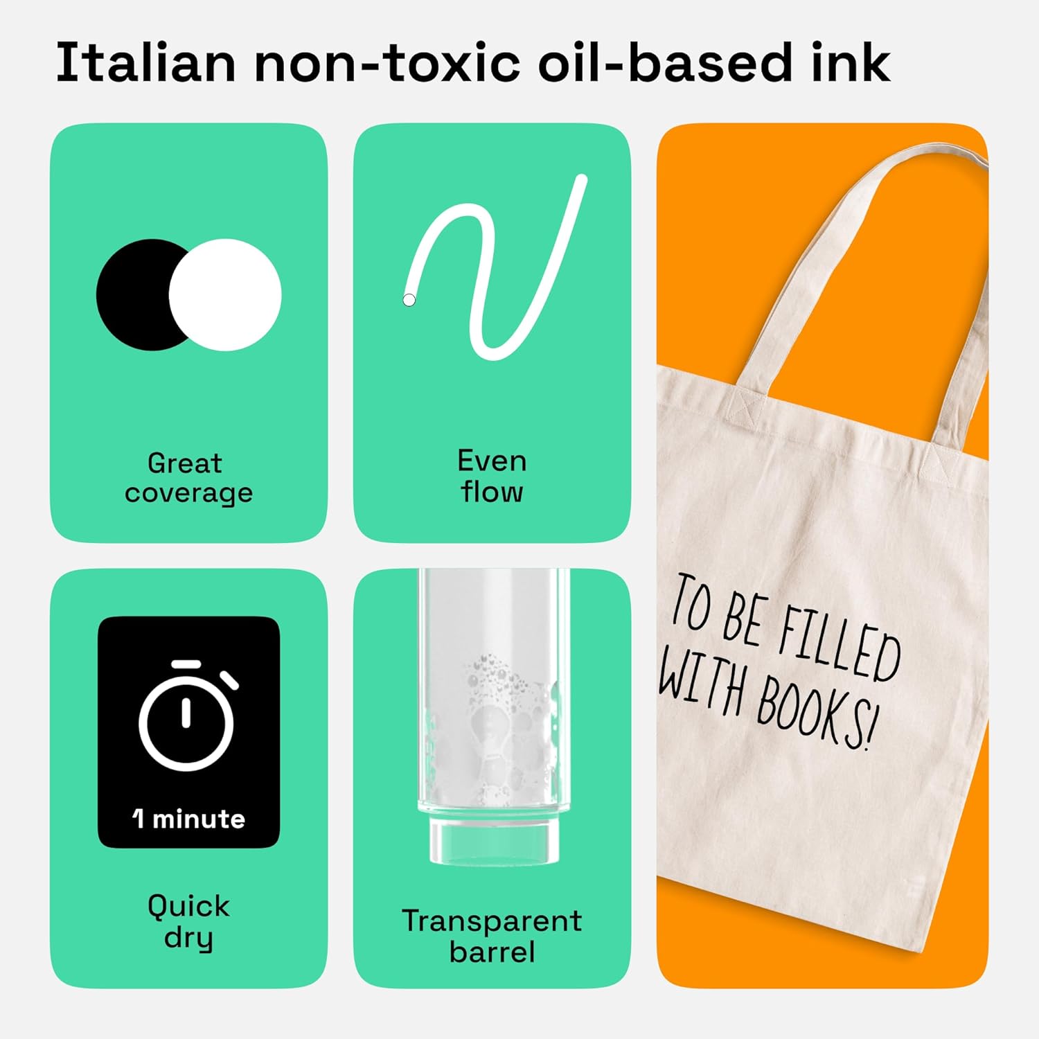 - Multiple Surfaces: Use these oil paint pens as oil markers for plastic and glass or as oil based fabric markers for clothes. Each black and white marker permanent is water-resistant. They’re also good for leather, vinyl, or epoxy resin. And the nibs are solid, even on rocks!