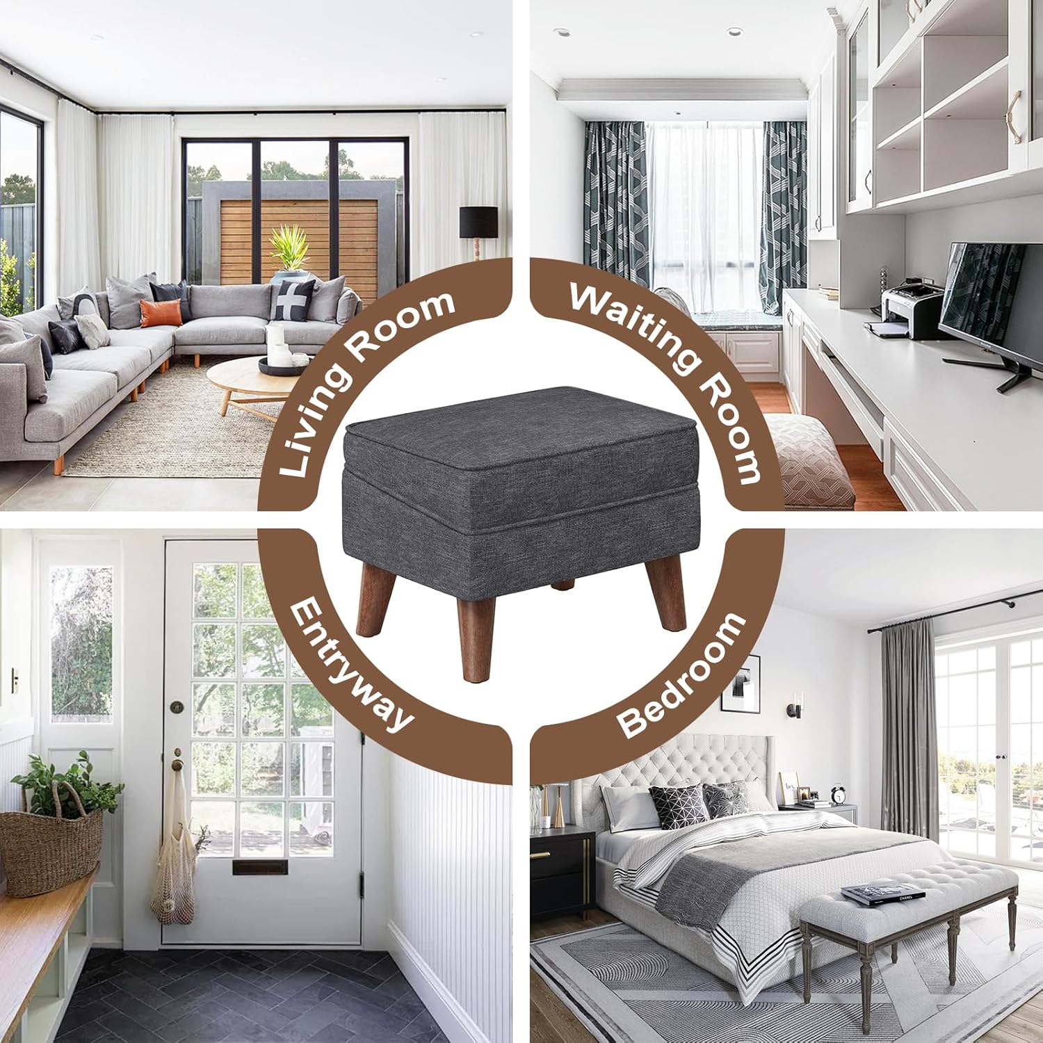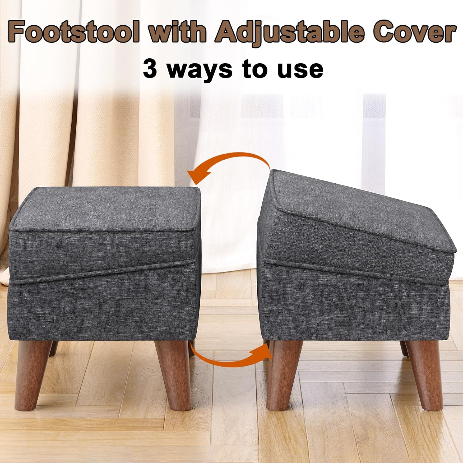 - 【Decorative Ottoman for Occasions】 High resilience foam wrapped in textured natural linen, modern style and simple appearance has a touch of casual. Wood legs with foot pads is quiet when moving, and can avoid leaving scratches on floor. Foot stool choices strive to stand out in any various occasion, such as bedroom, living room, study, lounge, balcony, dorm, entryway, hallway, etc.