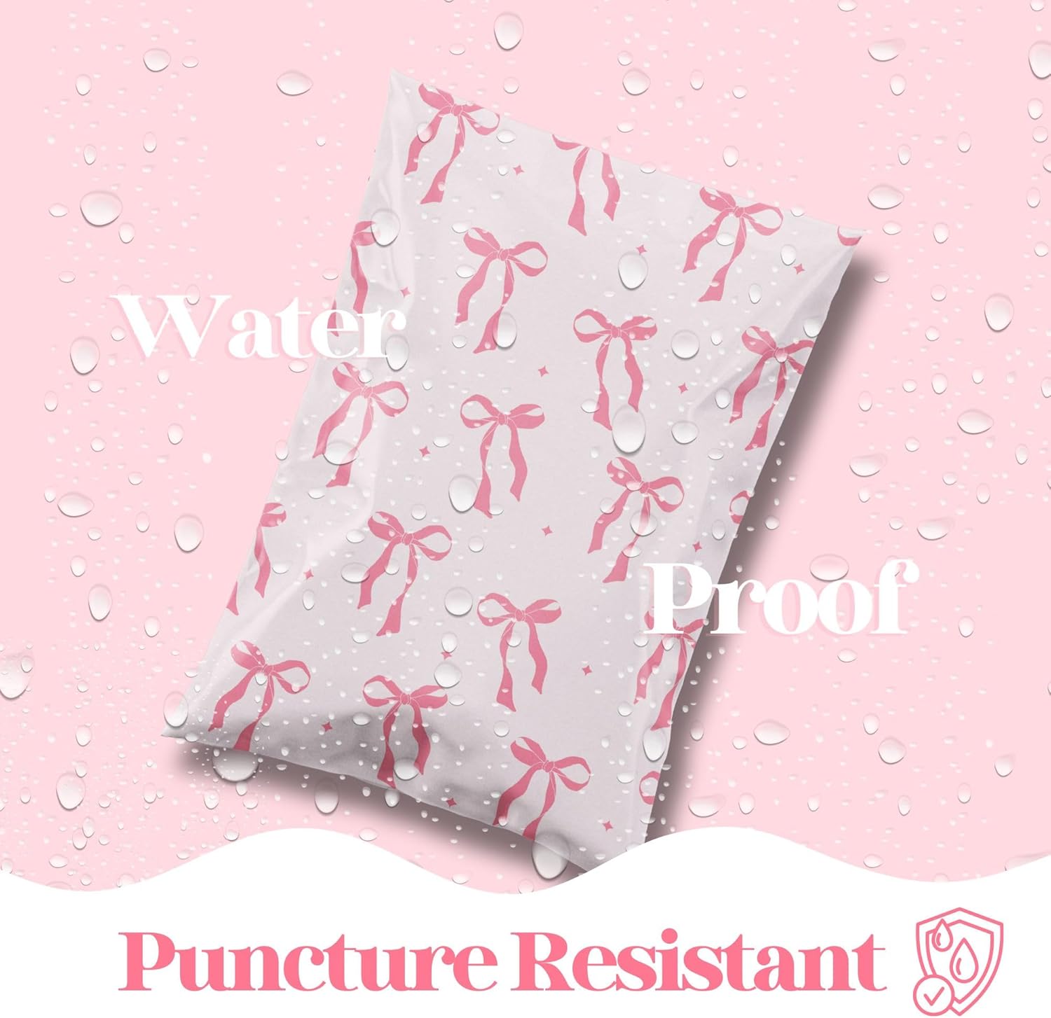 14.5x19 Designer Poly Mailer 100 Pack Heavy Duty Waterproof Self Seal Shipping Bags for Small Business Large Mailing Envelopes Bulk Tear Resistant Packaging Pink Bows Coquette