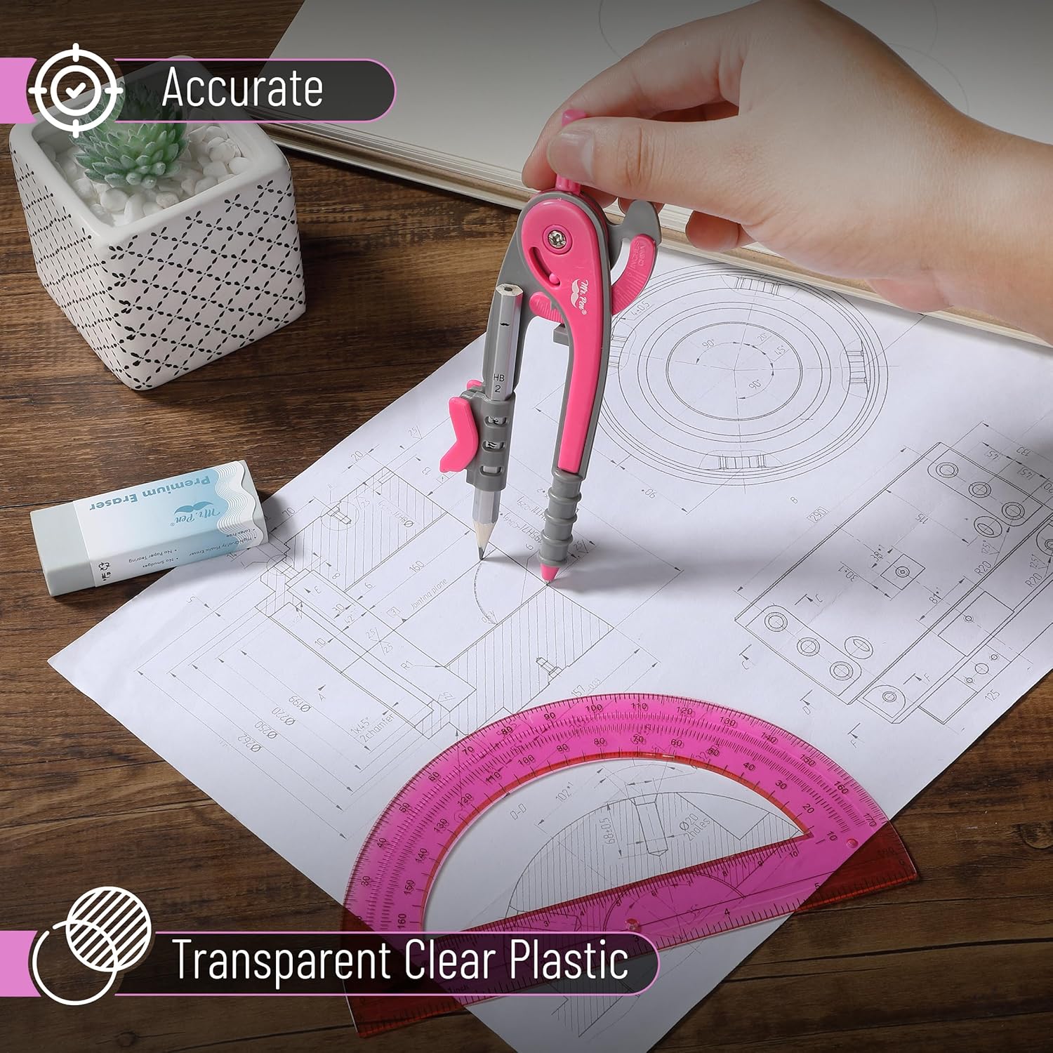 Mr. Pen- Compass and Protractor Set, Vivid Cerise, Compass Geometry Tool, Protractor and Compass Set, Compass Drawing Tool, Drawing Compass, Geometry Compass, Math Compass for Geometry
