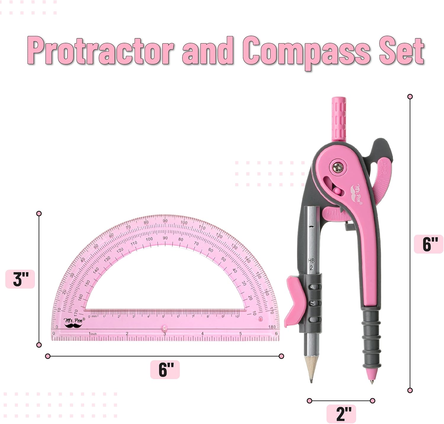 Mr. Pen- Compass and Protractor Set, Rogue Pink, Compass Geometry Tool, Protractor and Compass Set, Compass Drawing Tool, Drawing Compass, Geometry Compass, Back to School Supplies