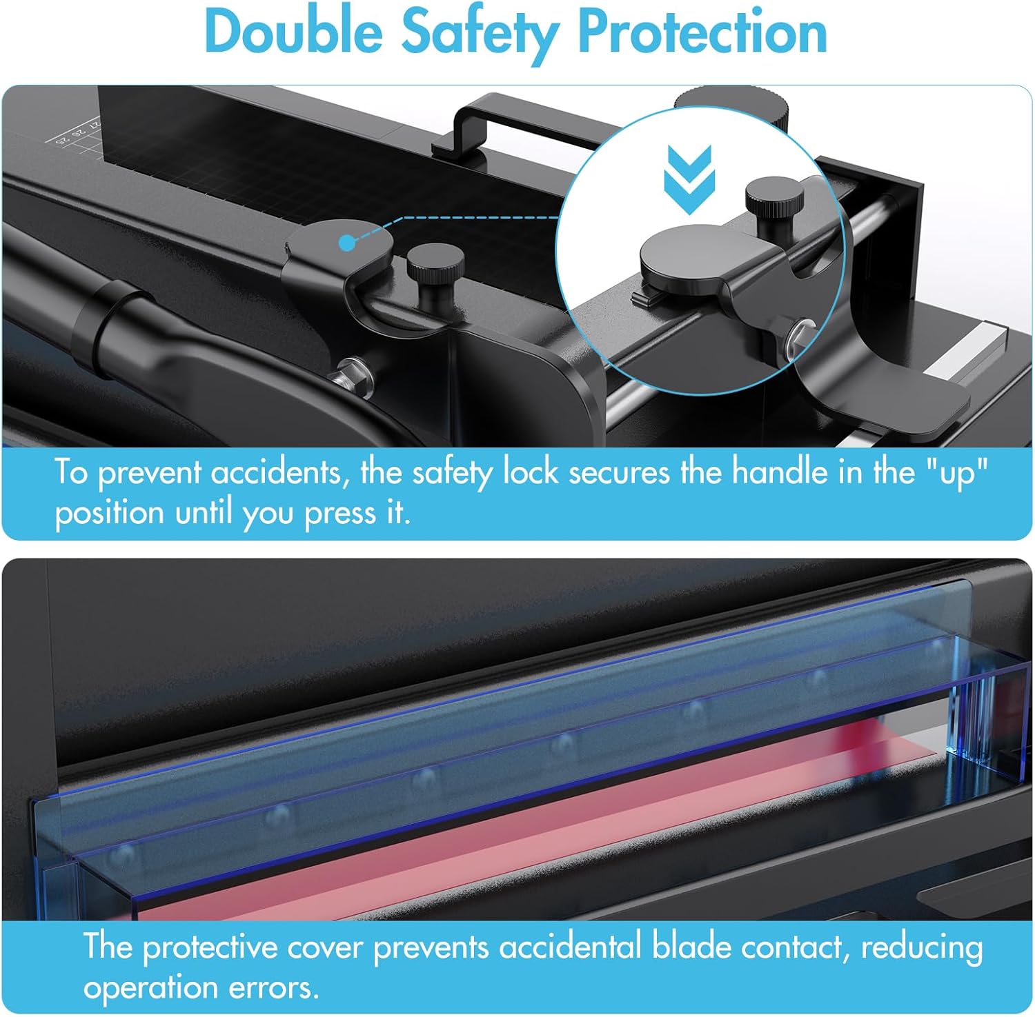 - [Enhanced Safety and Convenience] Equipped with a security lock and a versatile bracket supporting paper edges, this cutter minimizes operator risks and streamlines the cutting process