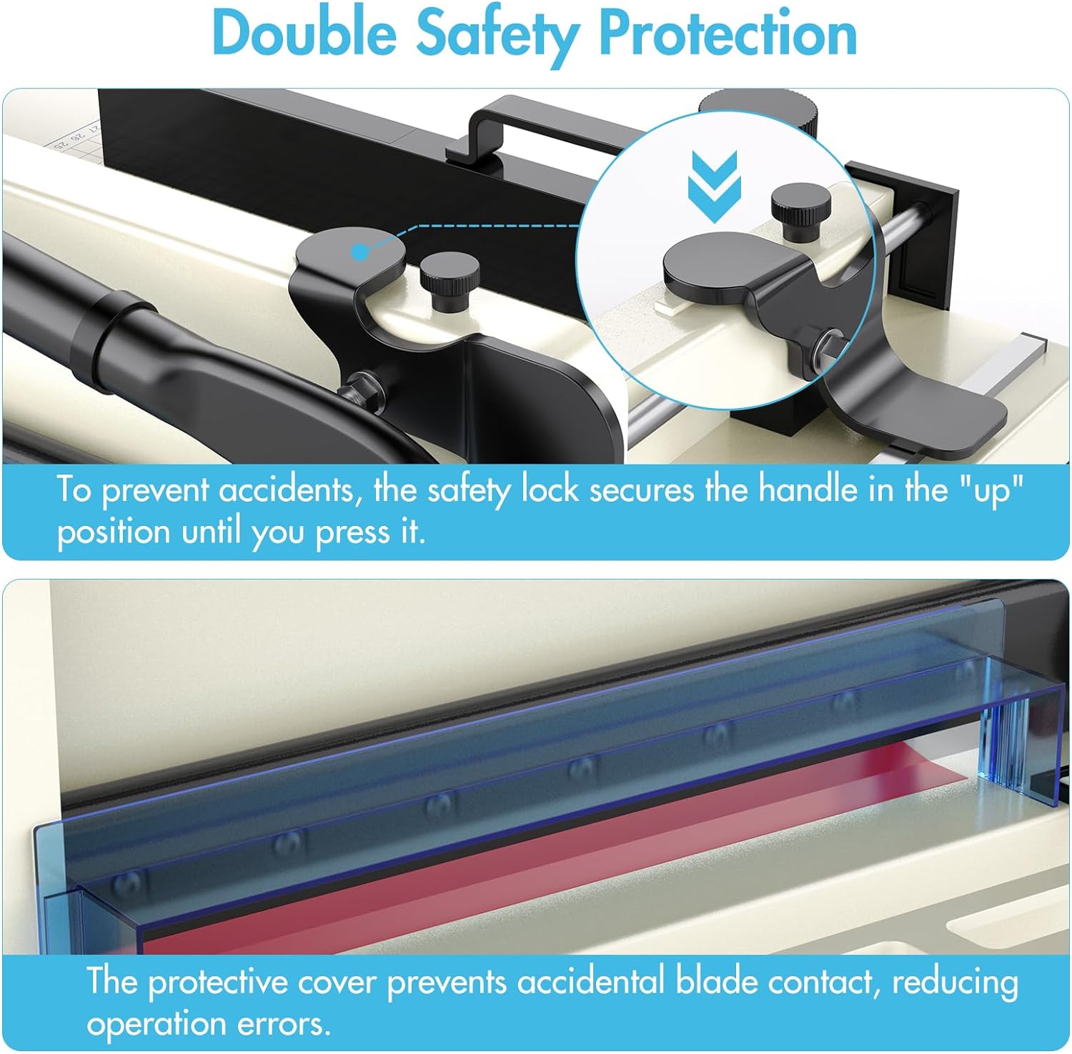 - [Enhanced Safety and Convenience] Equipped with a security lock and a versatile bracket supporting paper edges, this cutter minimizes operator risks and streamlines the cutting process