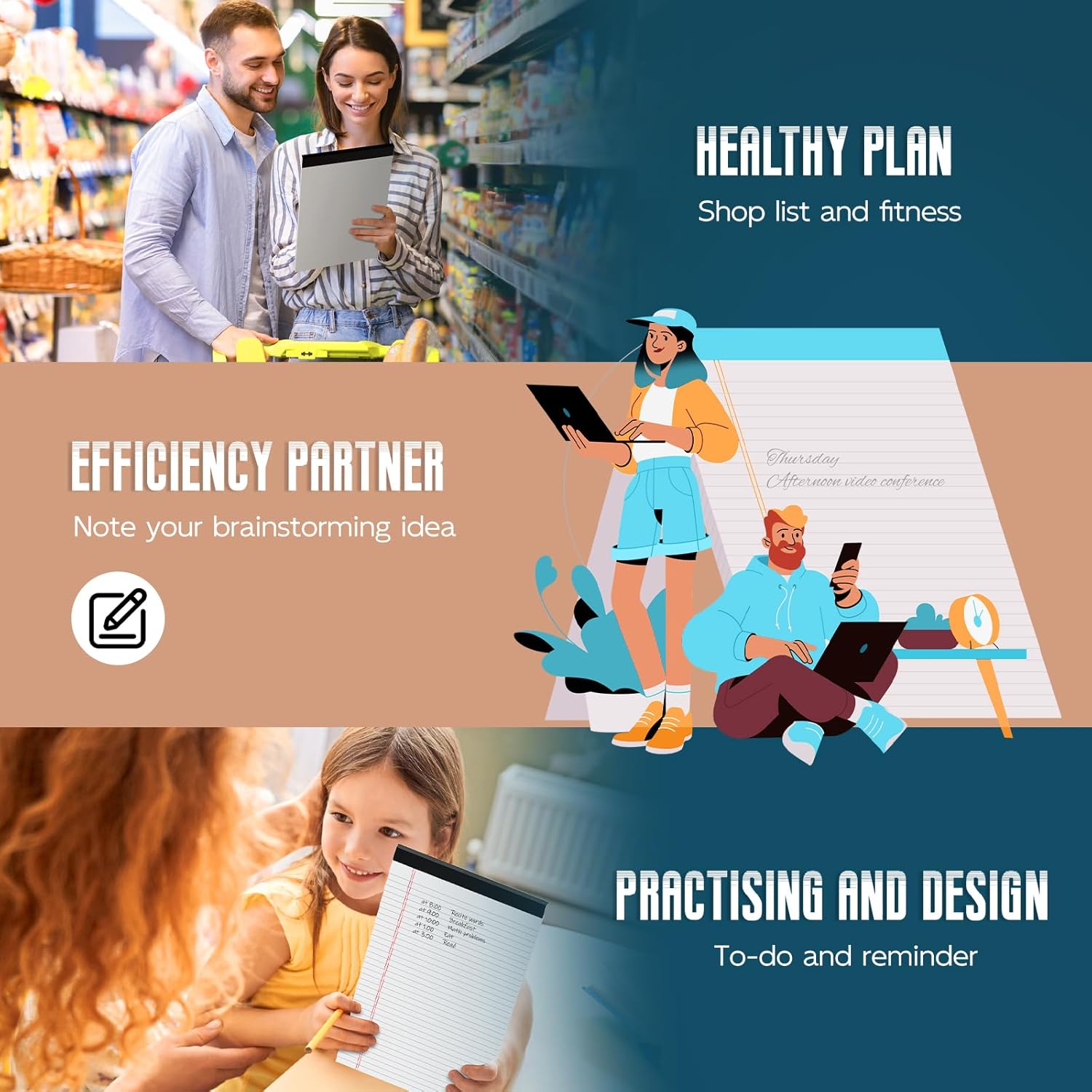 - 【High Quality Legal Pads】The legal pads 8.5 x 14 made of 70g paper material, thicker than average writing pads. Note pads 8.5x 14 wide ruled lined paper pads has the sturdy cardboard back allows the pen to slide smoothly, enjoy a smooth writing experience in everyday paper use and prevent ink from being left on the back or indented writing on the next sheet of paper. Suitable for a variety of pens.