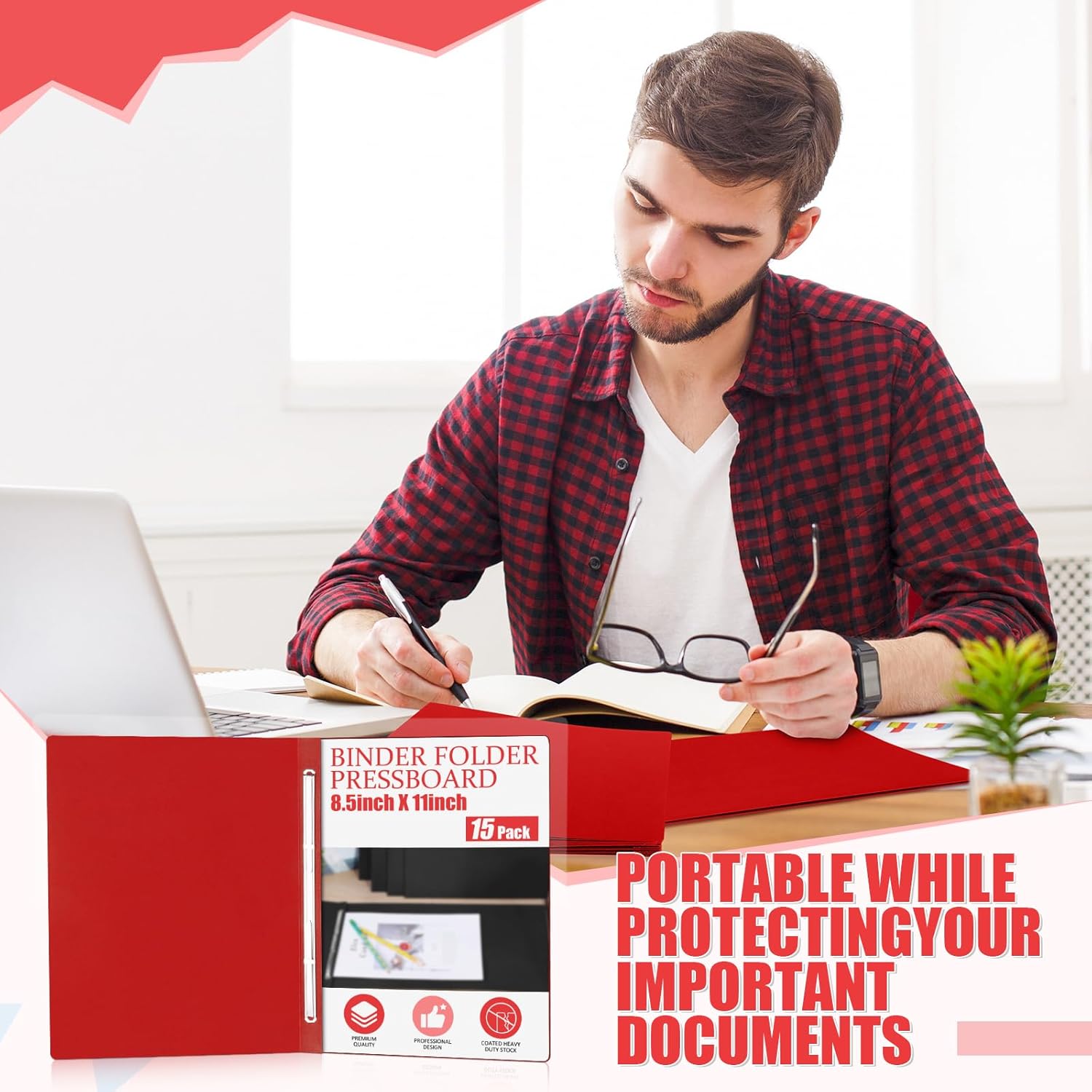 Zhanmai 15 Packs 8.5'' x 11'' Pressboard Report Covers, Metal Prong Fastener with Compressor, Letter Size 3'' Capacity Presentation Report Folder to Neatly Bind Reports, Proposals, Documents(Red)