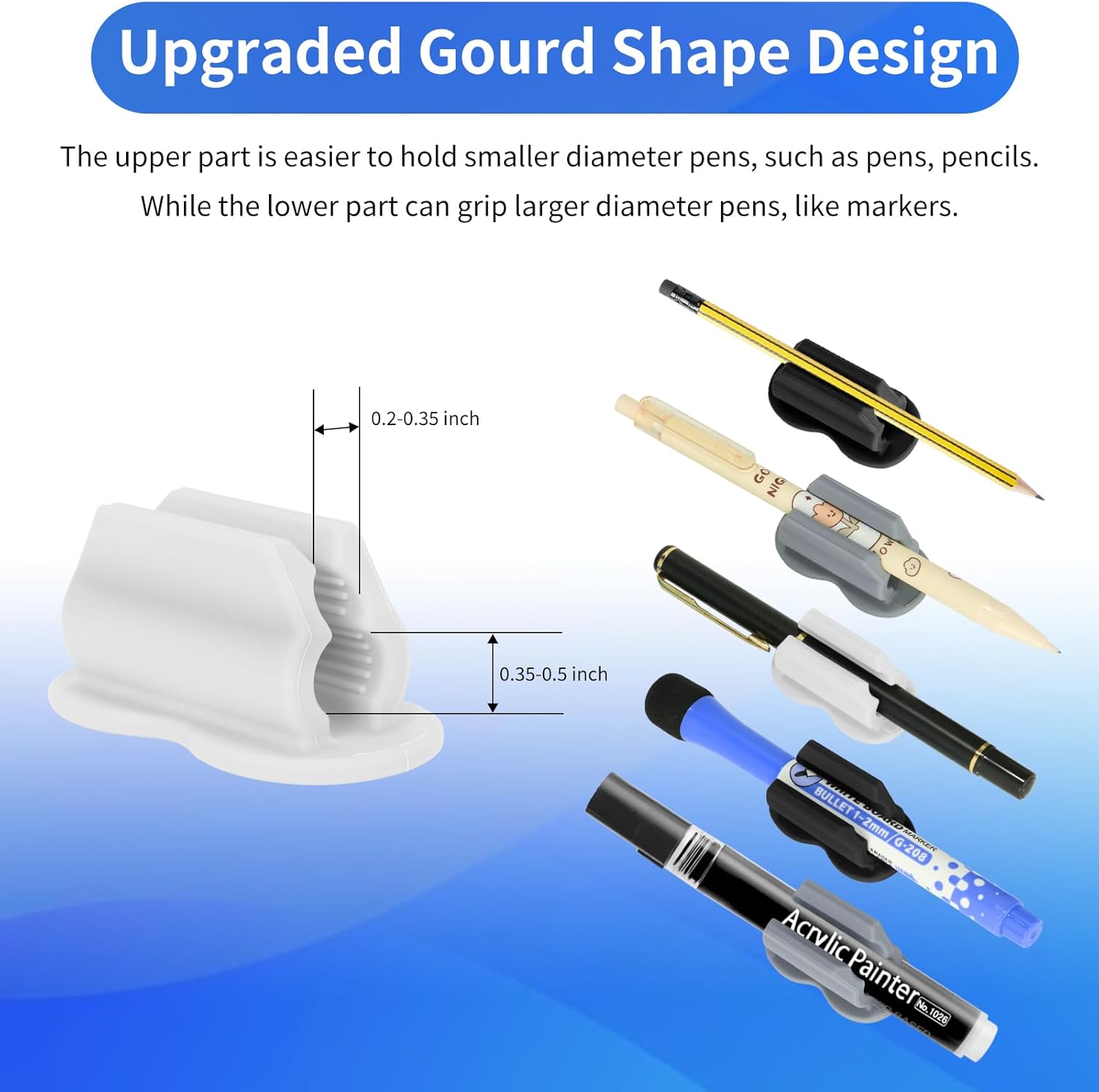 - 【Unique Dual-Hole Design & Anti-Slip Strips Inside】One of the best features of our pen holders is its dual-hole design which accommodates both slim and thick pens securely. That means the upper hole is perfect for smaller pens like pencils, stylus and ballpoint pens, while the lower hole is great for larger pens like markers and fountain pens. And there are anti-slip strips inside, keeping your pens from doing the usual slide-out or fall out