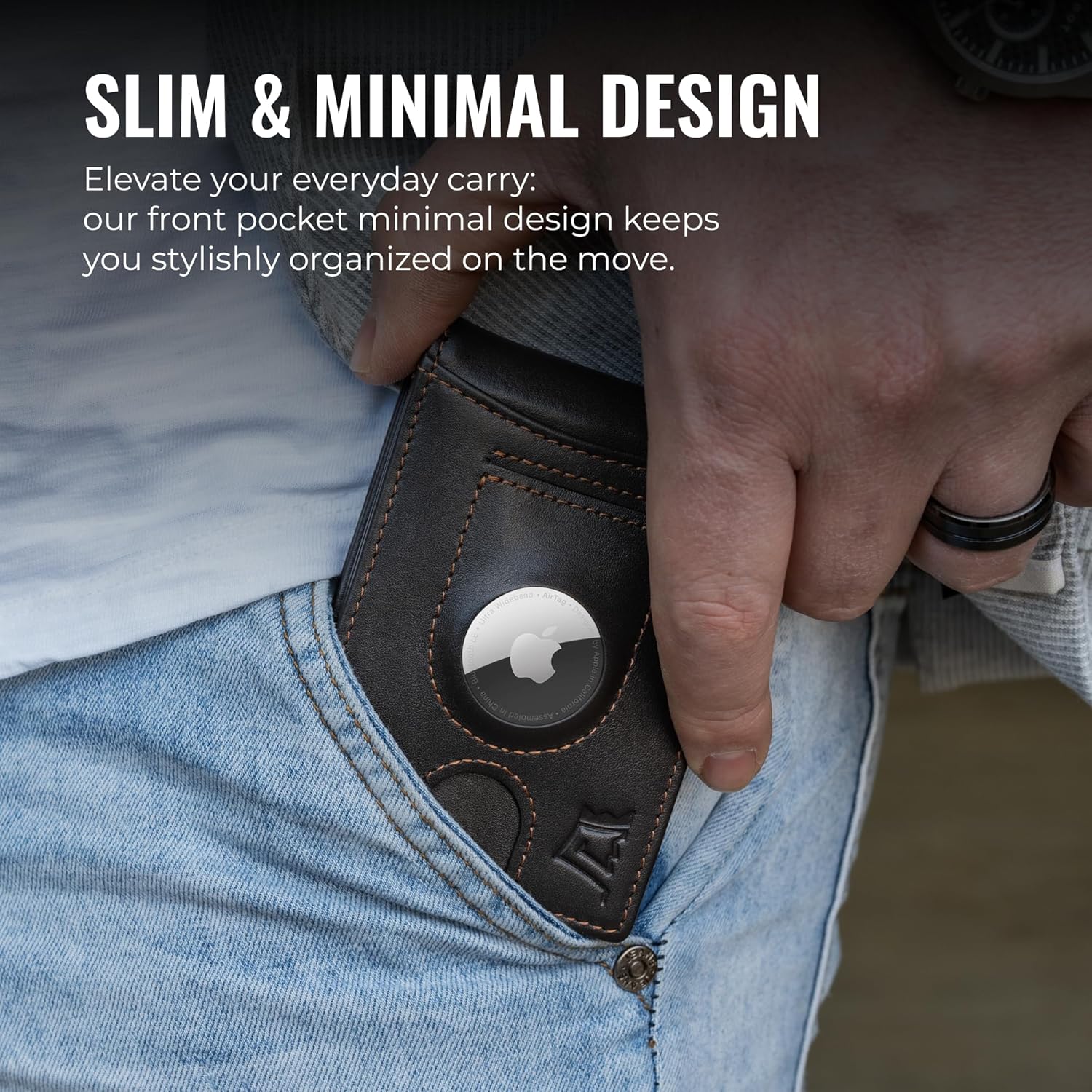 Kings Loot Trackable Airtag Wallet for Men | RFID Blocking Leather Design with Airtag Holder, Money Clip & Pull Tab | Minimalist Air Tag Wallets