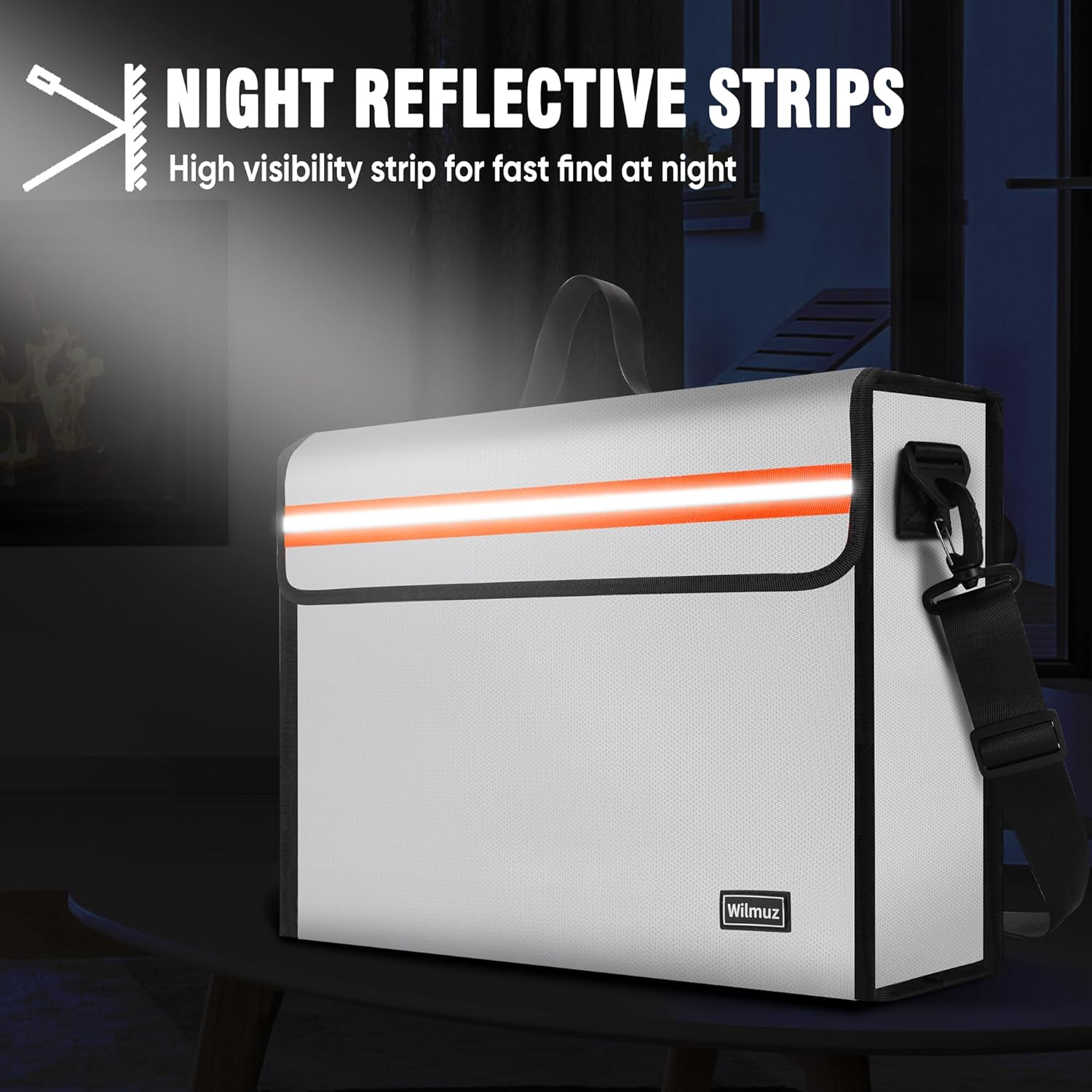 Fire Proof File Box for Documents with Shoulder Strap 5200℉ Insulated,14.9"x11.8"x4.7"Fireproof Document Bag with Reflective Strip,Fireproof Box for Money,Valuables,Jewelry(Silver)