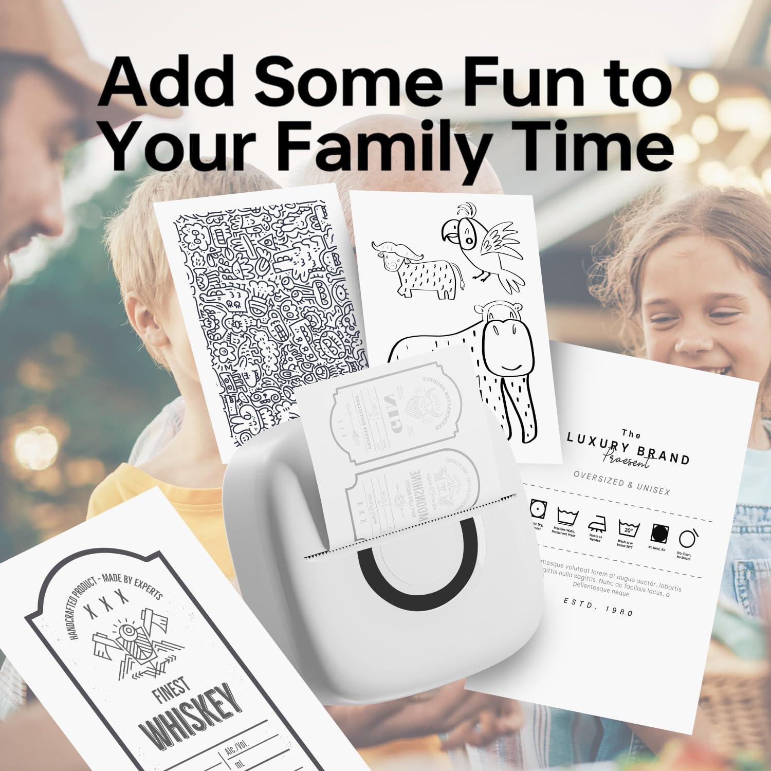 - [Enjoy More Interesting Life] New style inkless pocket printer is used to print pictures/photos,memo,shopping lists,study/meeting notes and etc.Mini sticker printer machine,it's a great helper to decorate your bullet journal more memorable,to make photos more stylish,to organize study notes more efficiently,to keep track of happiness moments at anytime etc.Undoubtedly,it must be a special gift for children,students,teachers and DIY craftsman on Christmas,Children's Day and Thanksgiving day.