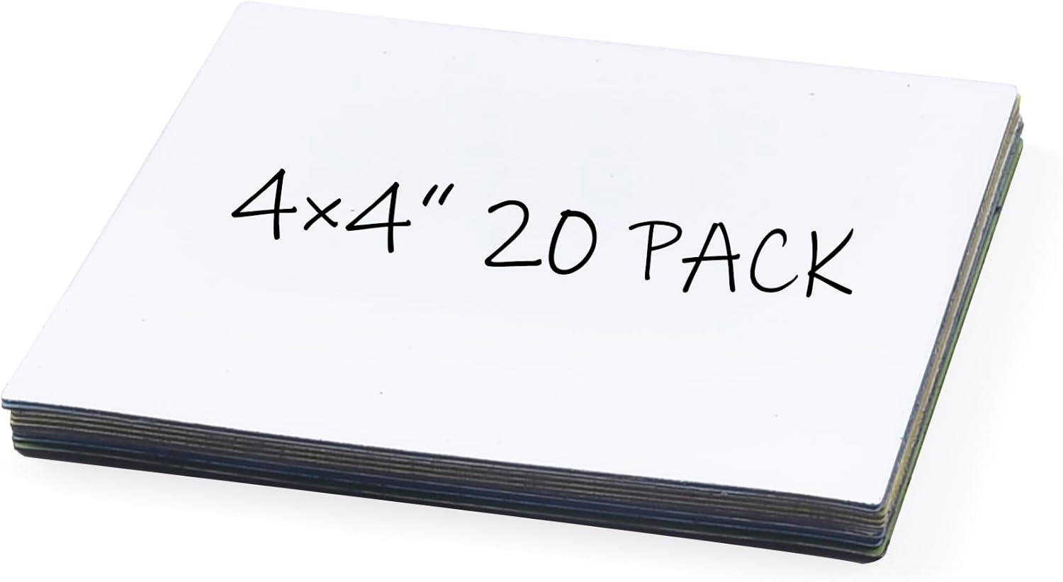 Realth Dry Erase Magnetic Labels White (4'' × 4'' 20 Pcs),Blank Reusable Magnet Stickers, Magnets for Whiteboard, Washable Magnetic Sheets, Magnetic Sticky Notes for Classroom Fridge Office