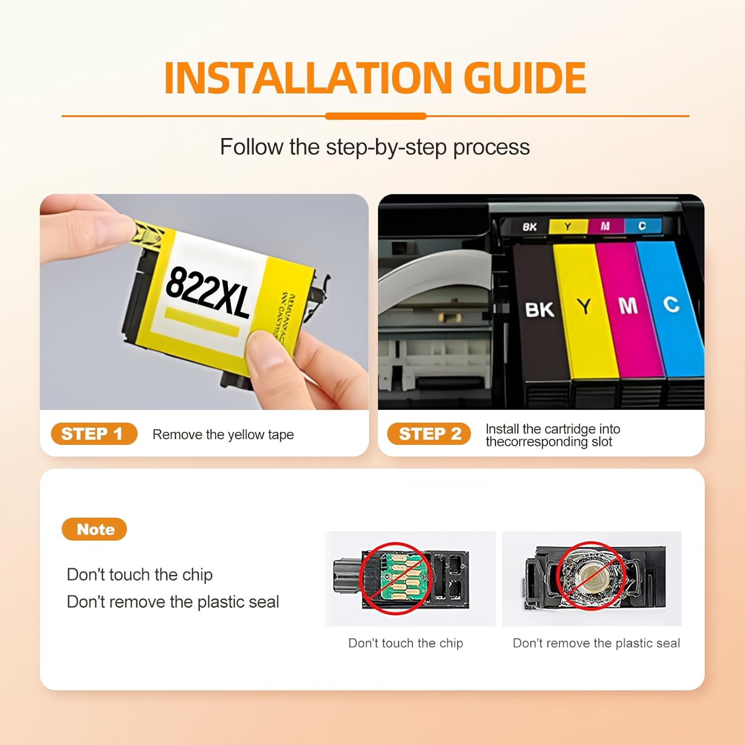 - Quality and Reliable : 822XL black ink cartridges for epson printer with the latest chips passed ISO9001 and ISO14001 quality management system certification. If you have any problem about 822XL ink cartridge,please contact us all time.