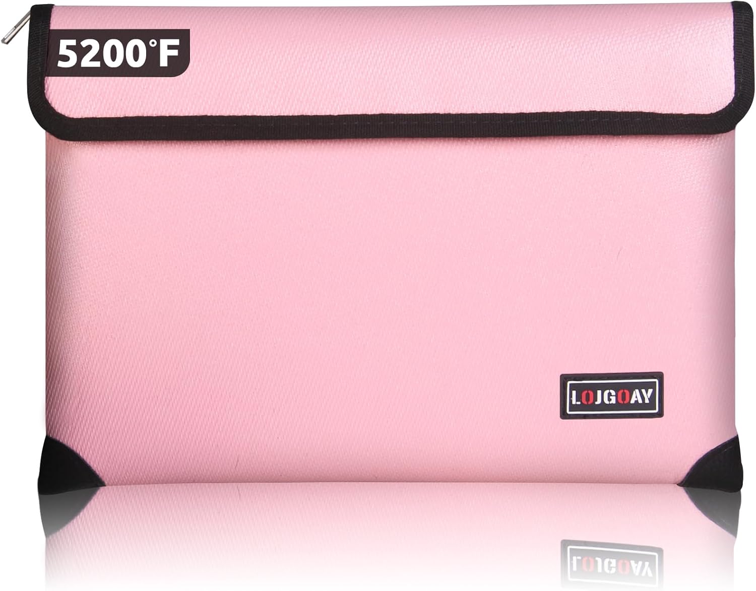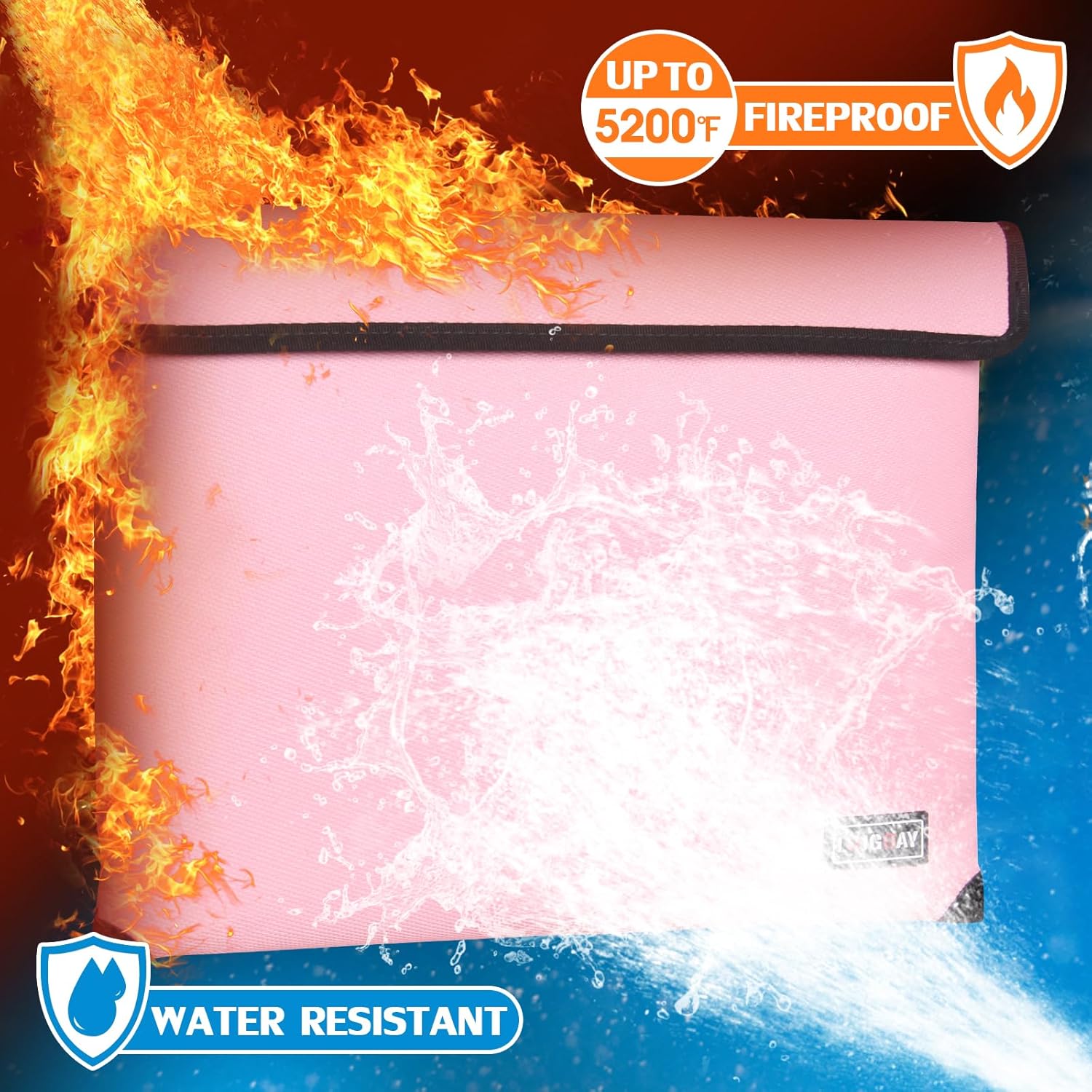 Fireproof Bag with 5200℉ Thermal Insulated, Waterproof Fireproof document bag with Zipper, Fireproof Money Bag for Cash, Fireproof Safe Bags for Home Safe Bank Valuable Documents (Pink, 11"x7.7")