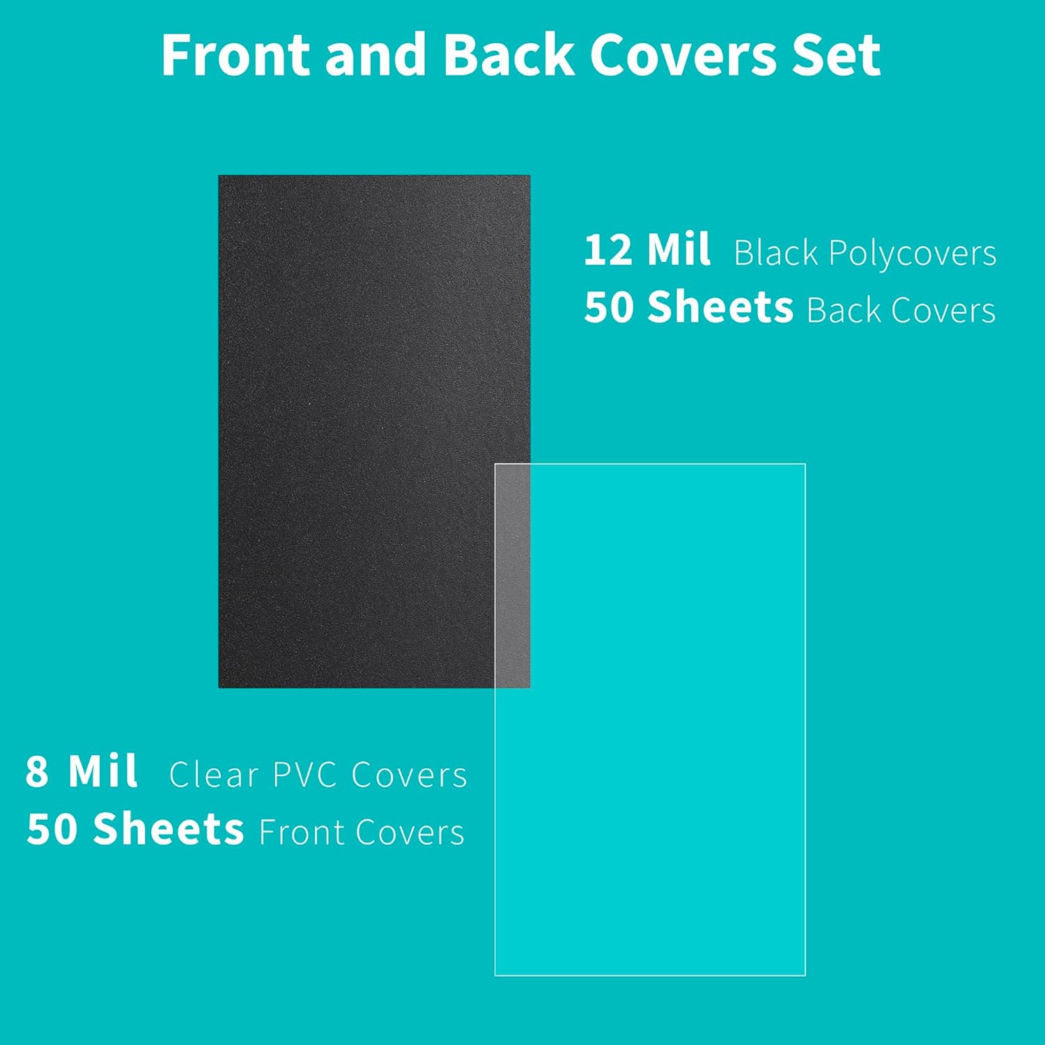 - 50 Pcs of Sand-Textured Polycovers: These 12 mil sand-textured polycovers are long-lasting and sturdy, waterproof, tear-proof, and robust enough for frequent handling, ensuring your documents are protected from damage and kept clean.