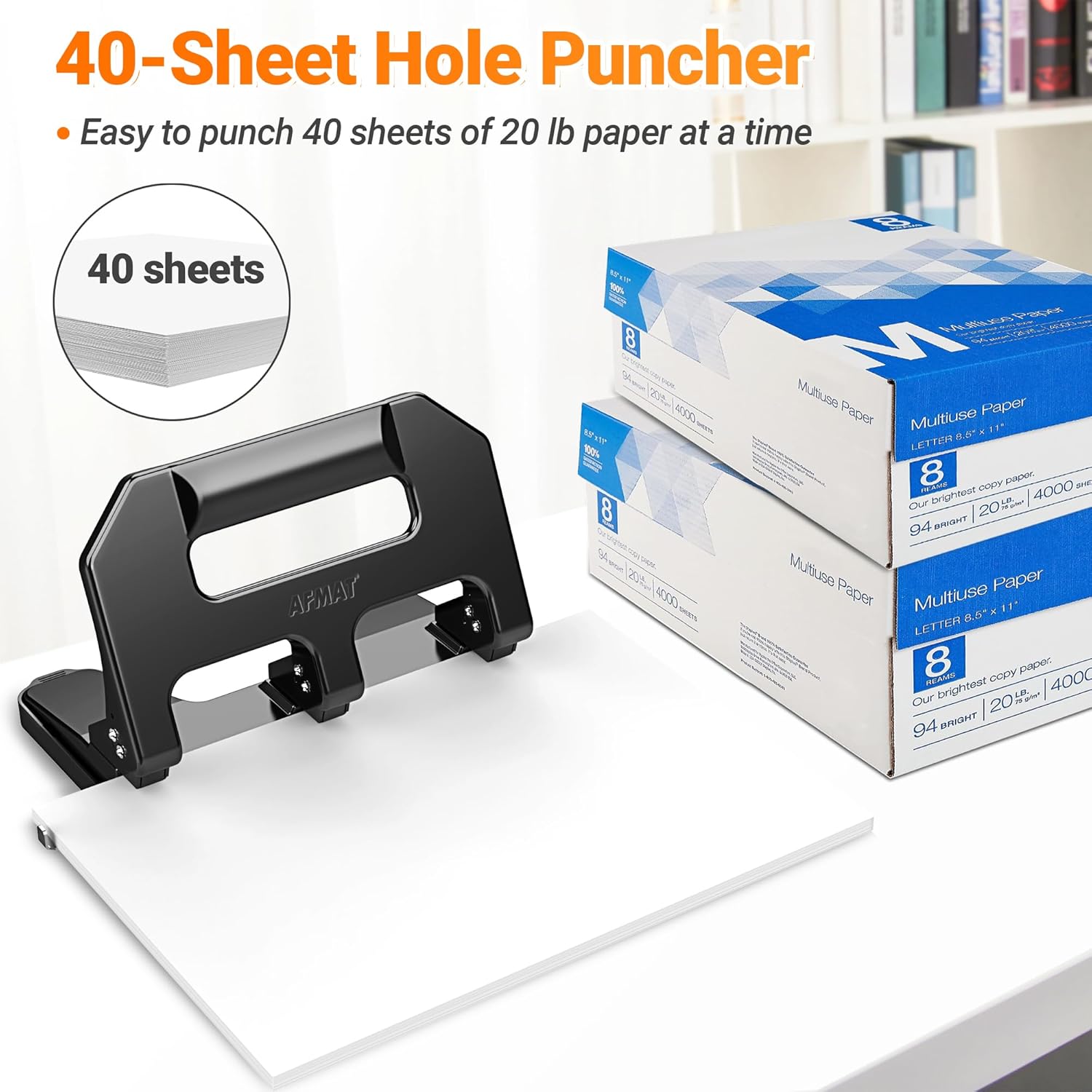 3 Hole Punch Heavy Duty, AFMAT 3 Hole Puncher for Binder, 10000+ Punching Times, 40-Sheet Three Hole Punch, Metal Hole Puncher 3 Ring, 50% Reduced Effort, Bulit-in S.S. Paper Guide, Last for Years