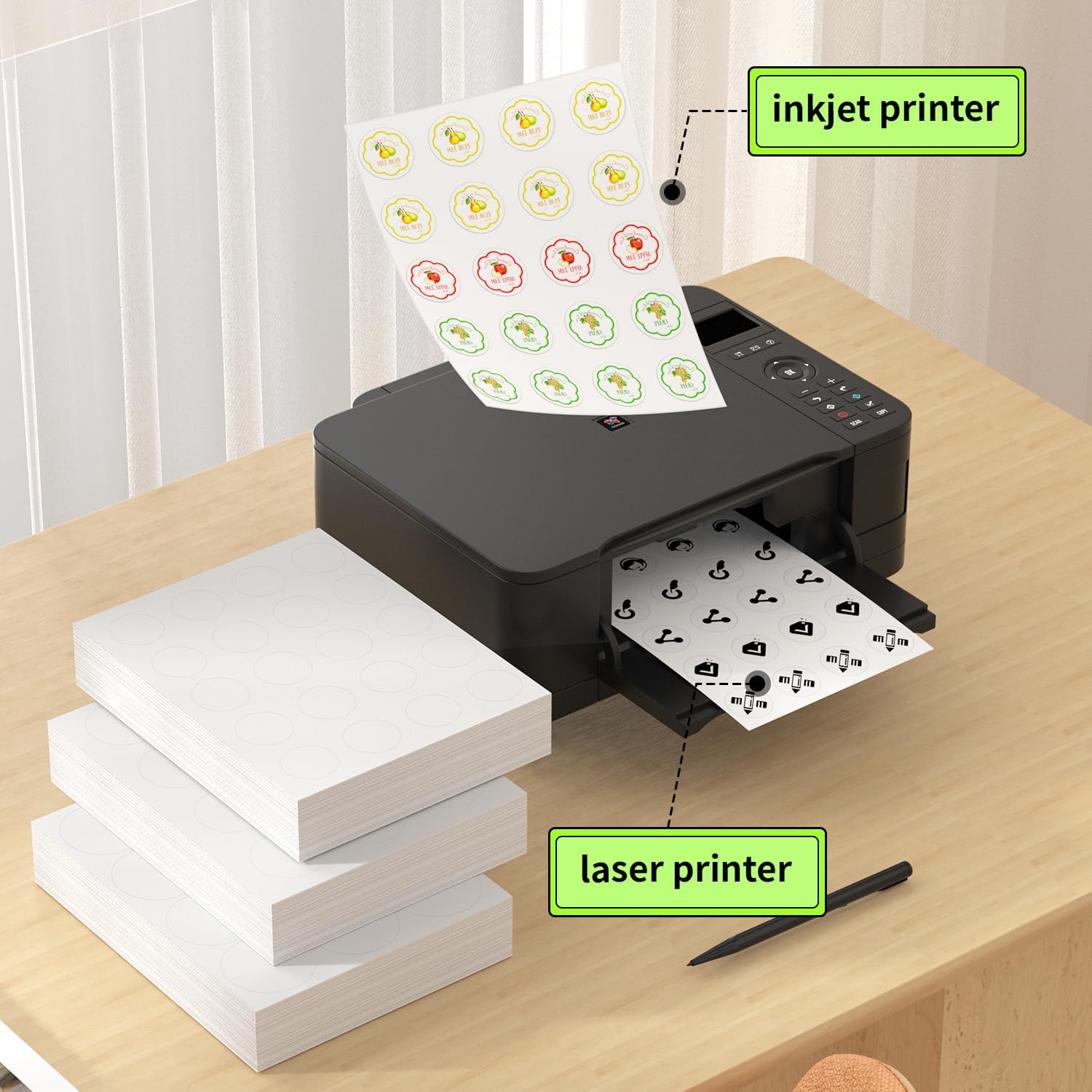 Methdic 1.5" Diameter High Visibility Printable Round Labels,Matte White,600 Customizable Blank Stickers