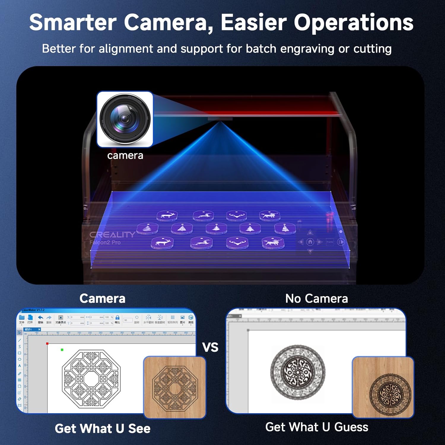 - User-Friendly and Versatile- The Creality Falcon2 Pro 22W comes with integrated air assist for better engraving results. It has extensive compatibility with different software and file formats, and features a drawer design for easy material handling. The product also offers multiple modes to complete various creative tasks, making it a versatile tool for both beginners and professionals.