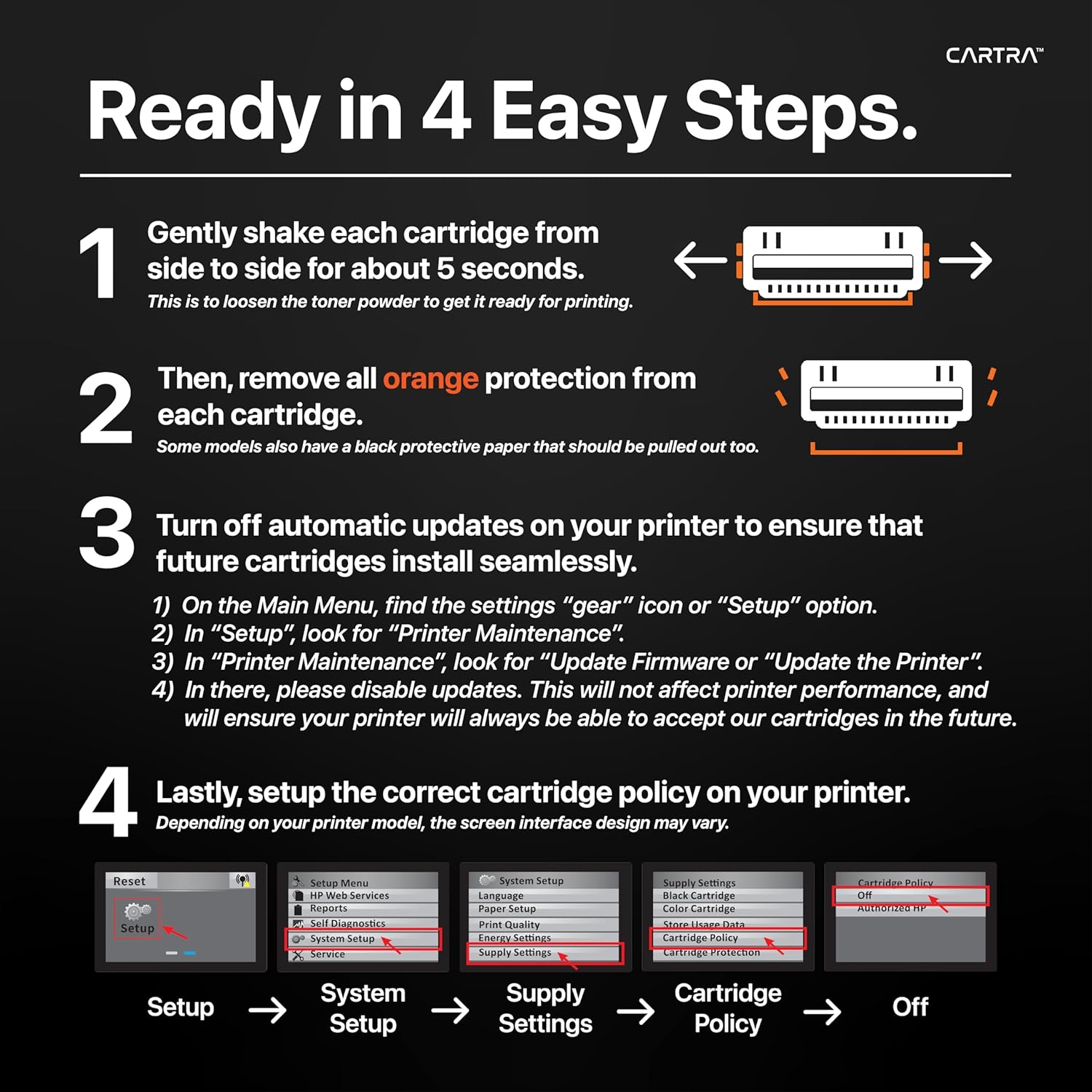 - Dedicated customer support: Backed by a US-based support team, the 410A cartridges come with a promise of hassle-free assistance and a commitment to resolving any issues swiftly, ensuring reliability and satisfaction in your daily printing operations.