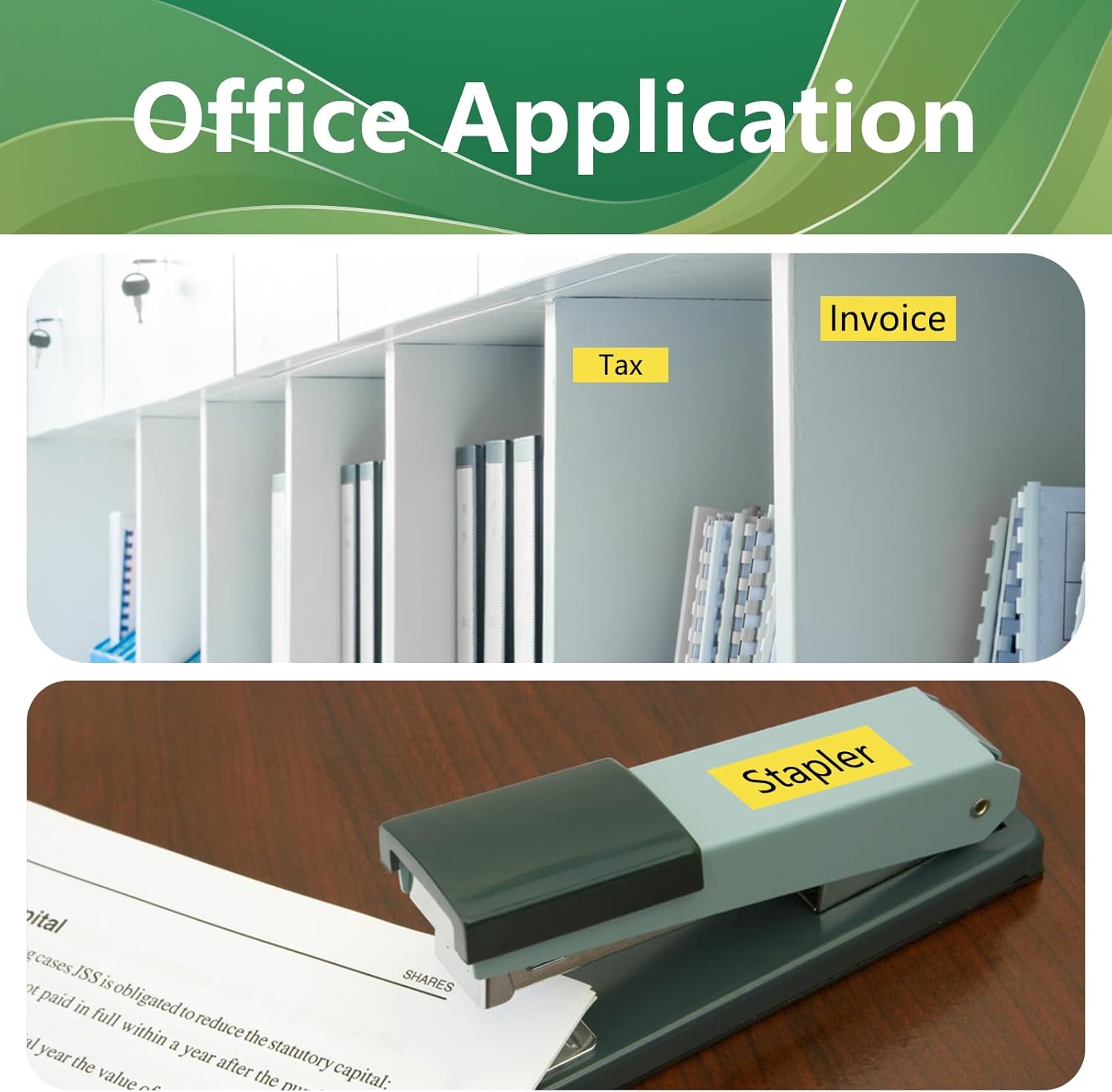 - Applications: TZe631 is suitable for home school office warehouse etc. It can be used to label files folders plug sockets books spice jars and more