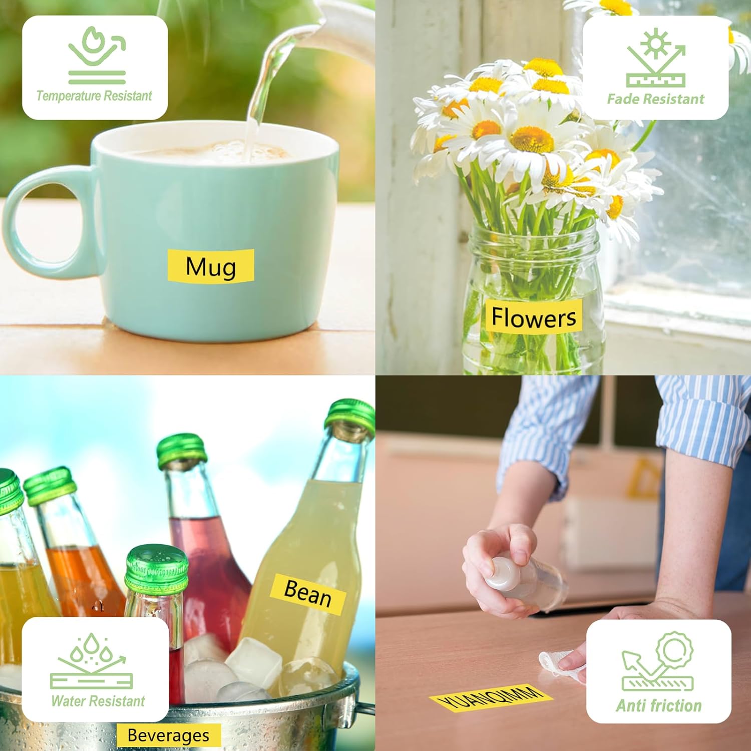 - Features: Water resistant Fade resistant Temperature resistant Corrosion resistant Abrasion resistant Grease resistant Grime resistant and Chemical resistant