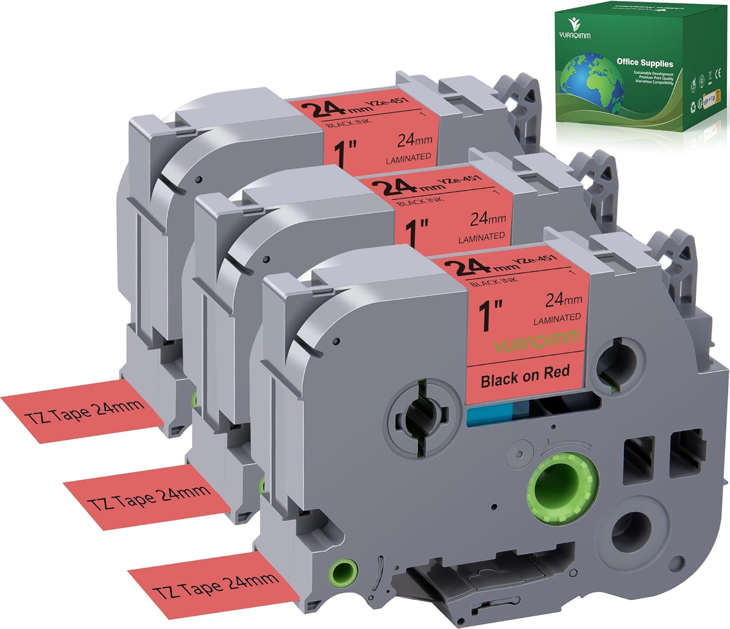 TZe-451 24mm TZe Red Tape Compatible with Brother PTouch TZ TZ-451 TZe451 TZ451 24mm 1 inch Laminated Black on Red Label Maker Tape for PT-E500 PT-D600 PT-P750W PT-P900W Printer, 3-Pack