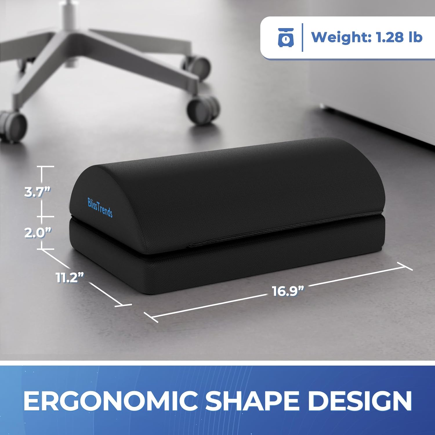 - [Comfortable Experience]The BlissTrends foot rest has two layers: the lower layer measures 16.9"*11.2"*2.0", and the upper layer is 3.7" thick. The foot stool is ergonomically designed with sufficient height and curvature to better relieve the pressure on your limbs and discomfort when sitting for long periods of time