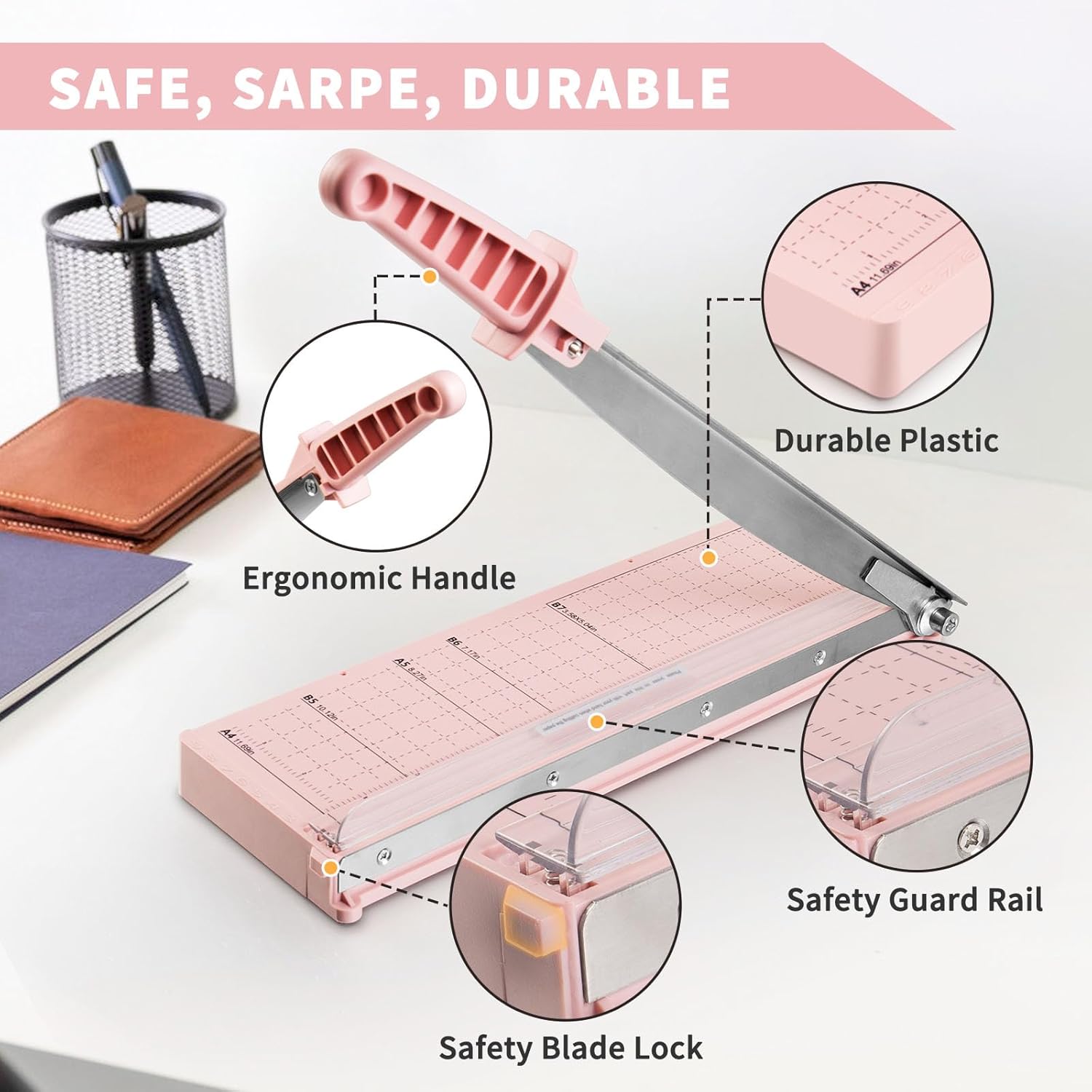 MAKEASY Paper Cutter 12 Inch, Guillotine Paper Cutter with 8 Sheet Capacity, Heavy Duty Paper Cutter for Cardstock, Paper Trimmer for Crafting, Classroom and Office, Pink