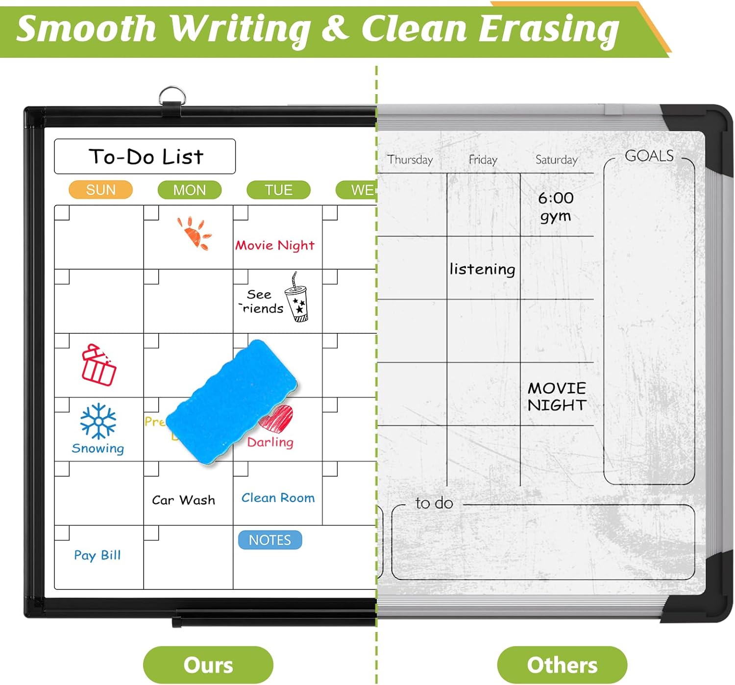 Dry Erase Calendar Whiteboard for Wall, 24" x 18" Magnetic Monthly White Board Calendar with Black Aluminum Frame, Double-Sided Hanging Dry Erase Board for Office, Home, School