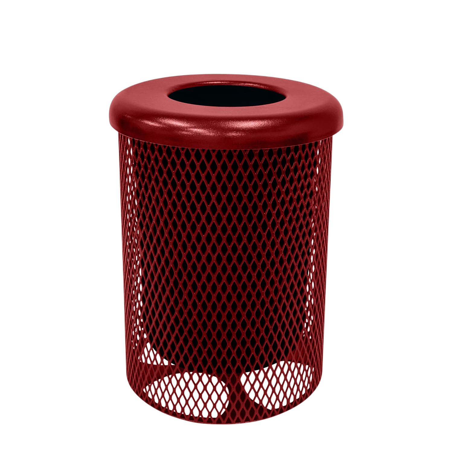 RFT-TXTBUR Heavy Duty 32 Gallon Round Trash Receptacle, Liner Included, Textured Burgundy with Flat Top, Made in America