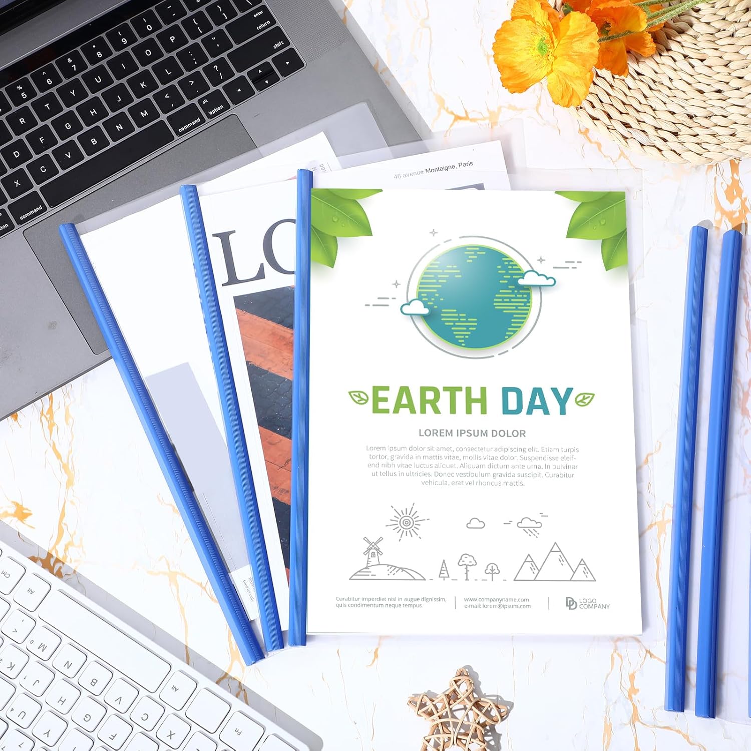 Thenshop 100 Pcs Clear Report Covers with Sliding Bars Sliding Bar File Folder Binder Plastic Report Folder for File Paper Book Resume Letter Office, 30 Sheet Capacity(Blue)
