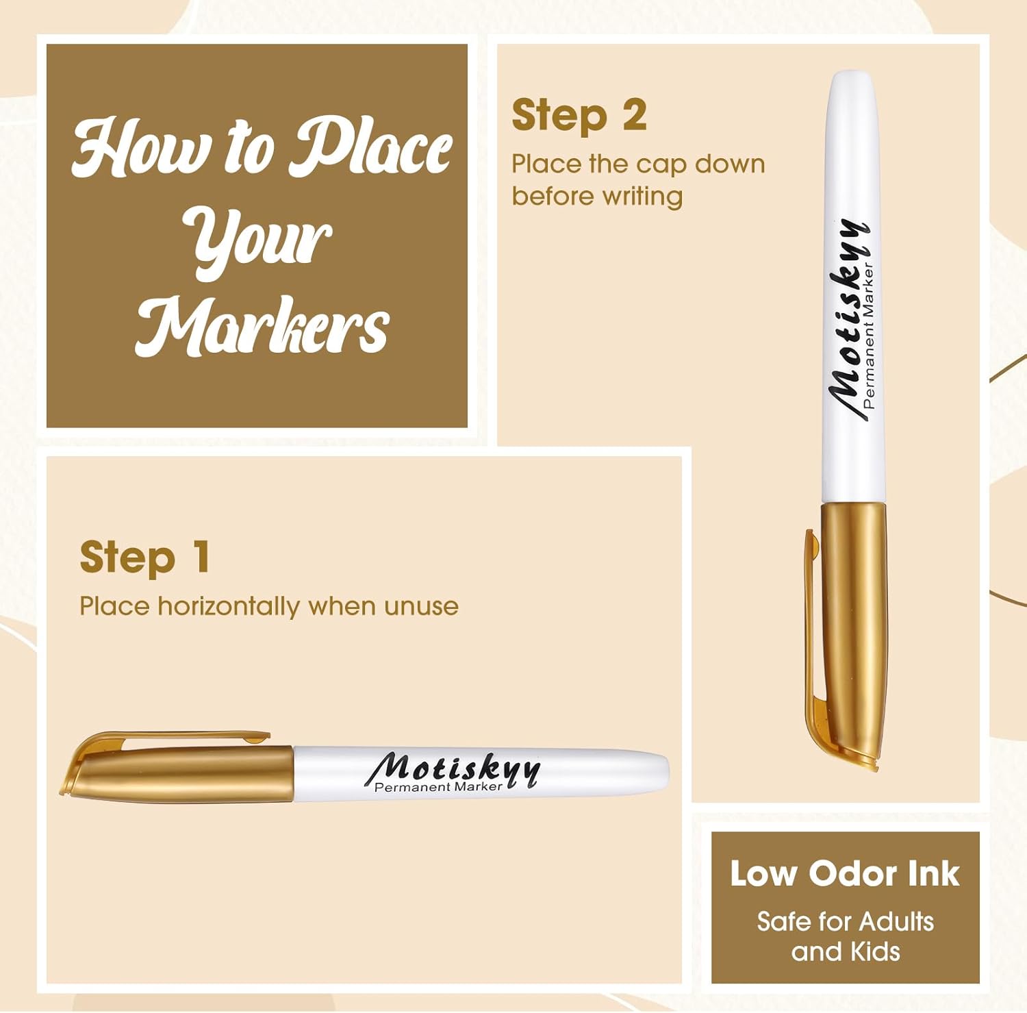 - Wide Use: these gold permanent markers can add metallic touch to your projects such as black paper, gift or thank you card, glass bottle, wood, craft ornament and DIY photo album for calligraphy, lettering, drawing and signature