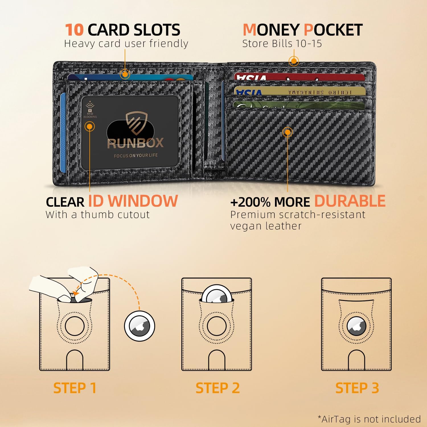 - Lifetime Guarantee - We prioritize the quality of the bifold wallet and provide a lifetime service. If you have any quality issues with your RUNBOX credit card wallet, contact us, we will respond within 24 hours