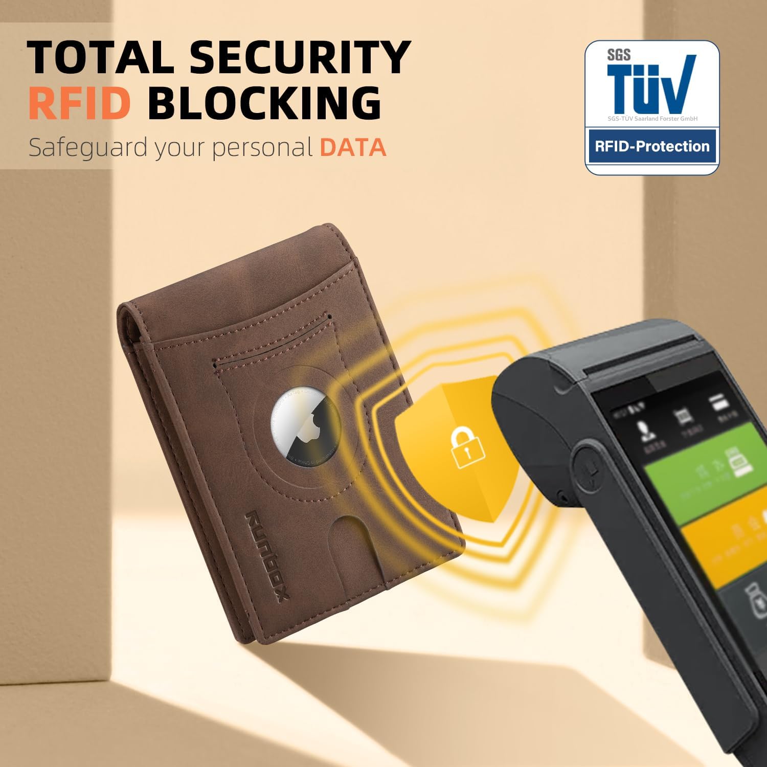 - RFID ANTI-THEFT FUNCTION - This wallet for AirTag boasts RFID blocking shield technology, safeguarding your personal and financial data against unauthorized scanning and identity theft. Enjoy peace of mind knowing that your information is safe and secure