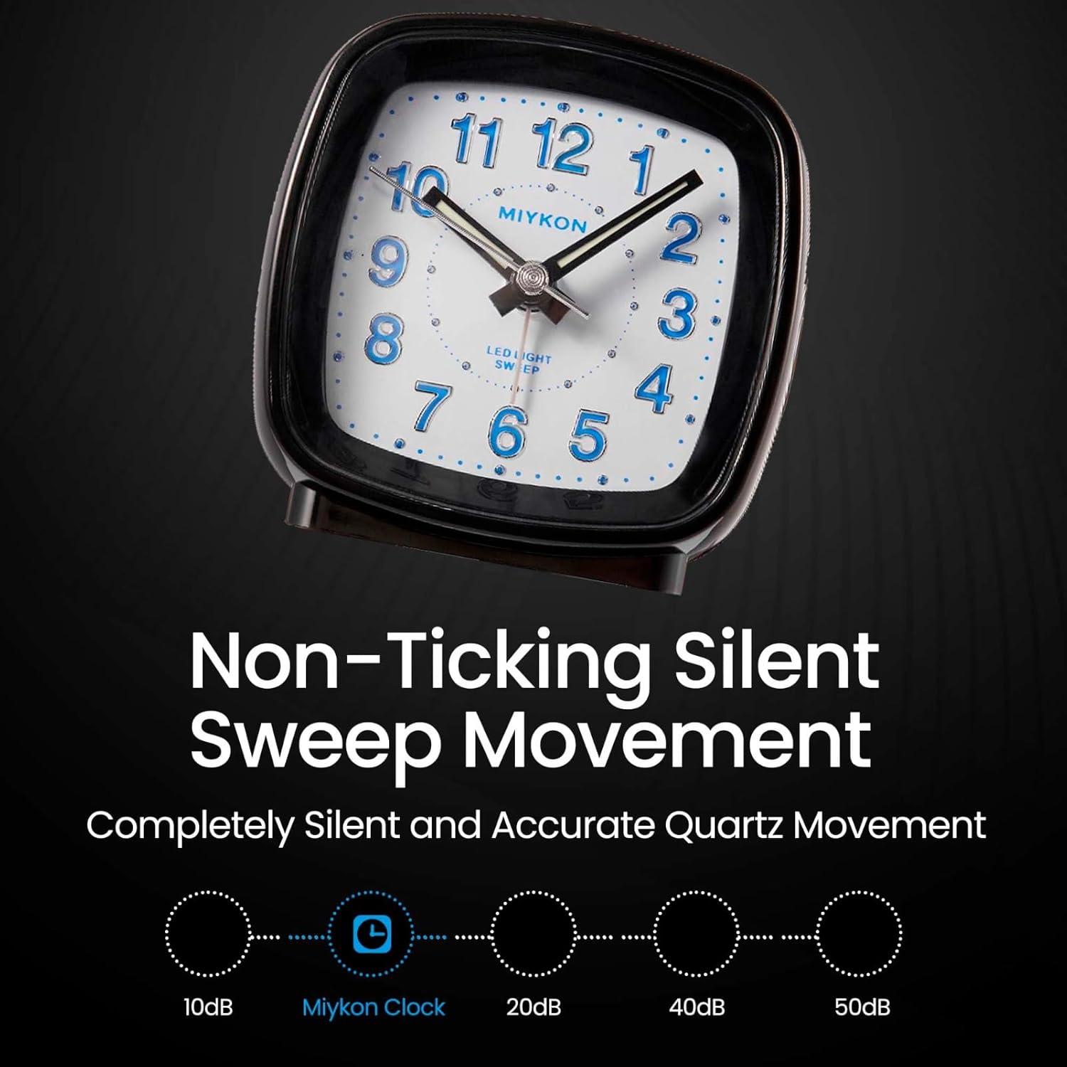 Miykon Small Square Analog Alarm Clock – Silent Non-Ticking, Battery Operated with LED Light & Snooze – Desk, Table, Travel or Bedside Clock for Bedroom, Office, Bathroom – Black 2.5 Inch