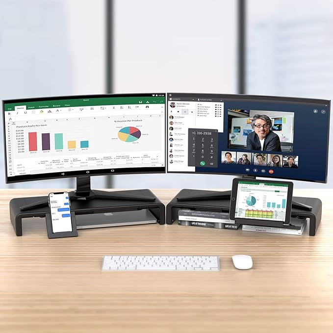 - 【Ergonomic Monitor Riser for Desk】 Achieve a comfortable viewing height for your monitor, reducing strain on your back and neck during computer work. The stand also provides extra space underneath to neatly store the keyboard and mouse when not in use. This desk monitor stand is a perfect desk organizer and space saver.