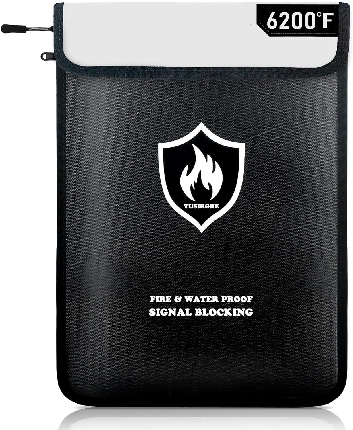 6200°F Upgraded Fireproof Document Bag, 15.7" x 11.4" Faraday Bag, Water Resistant Fireproof Money Bag with Zipper, 18 Layers of Heat Insulated Materials, RFID Blocking Bag, Anti-Theft Anti-Tracking