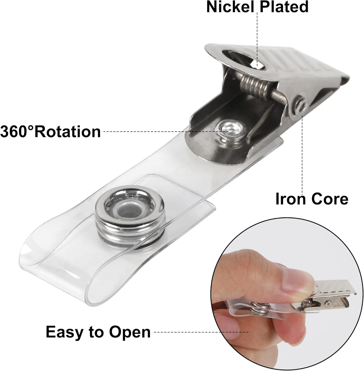 - High-Quality Material: Crafted from premium metal and PVC, these badge clips are designed for durability and repeated use. The material is safe, environmentally friendly, and resistant to rust, providing you with a reliable and pleasant experience.
