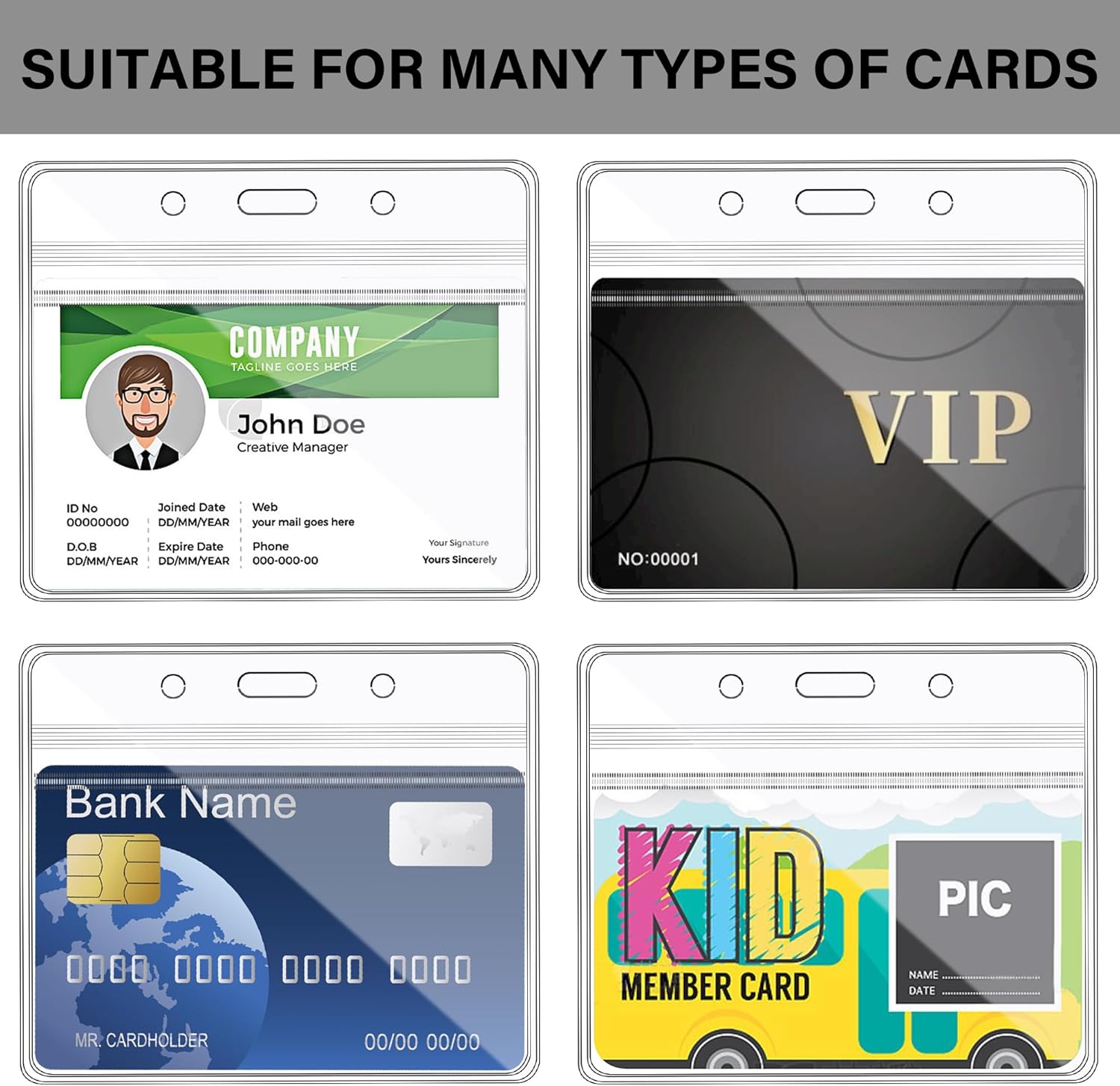 - Application: The badge protector is suitable for meetings, social events, reunions, and other gatherings. It can be used to store credit card, school card, ID card, subway card, etc. Each pouch comes with pre-drilled holes for convenient attachment to breakaway lanyards or metal badge clips available in our store.