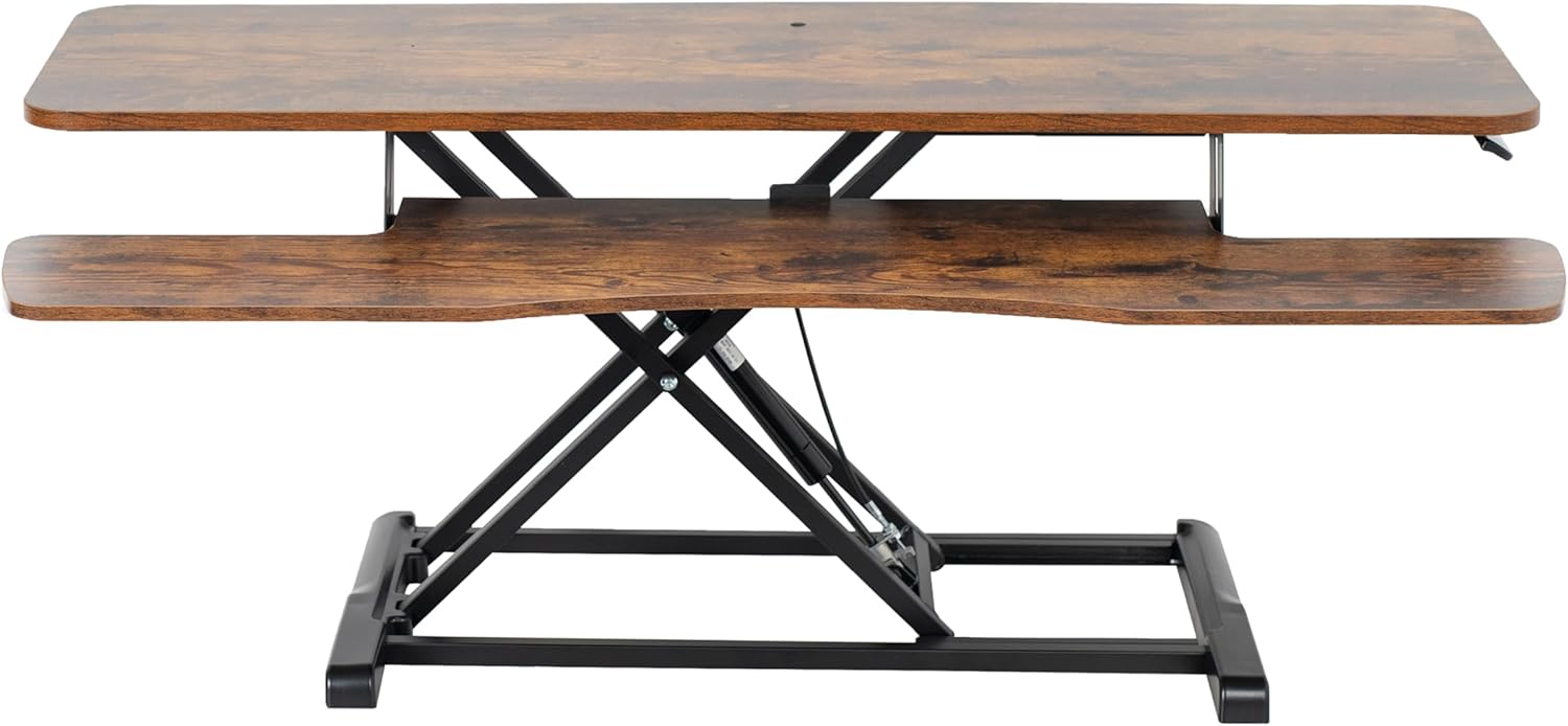 VIVO 48 inch Desk Converter, K Series, Height Adjustable Sit to Stand Riser, Dual Monitor and Laptop Workstation with Wide Keyboard Tray, Rustic Vintage Brown Top, Black Frame, DESK-V048KN
