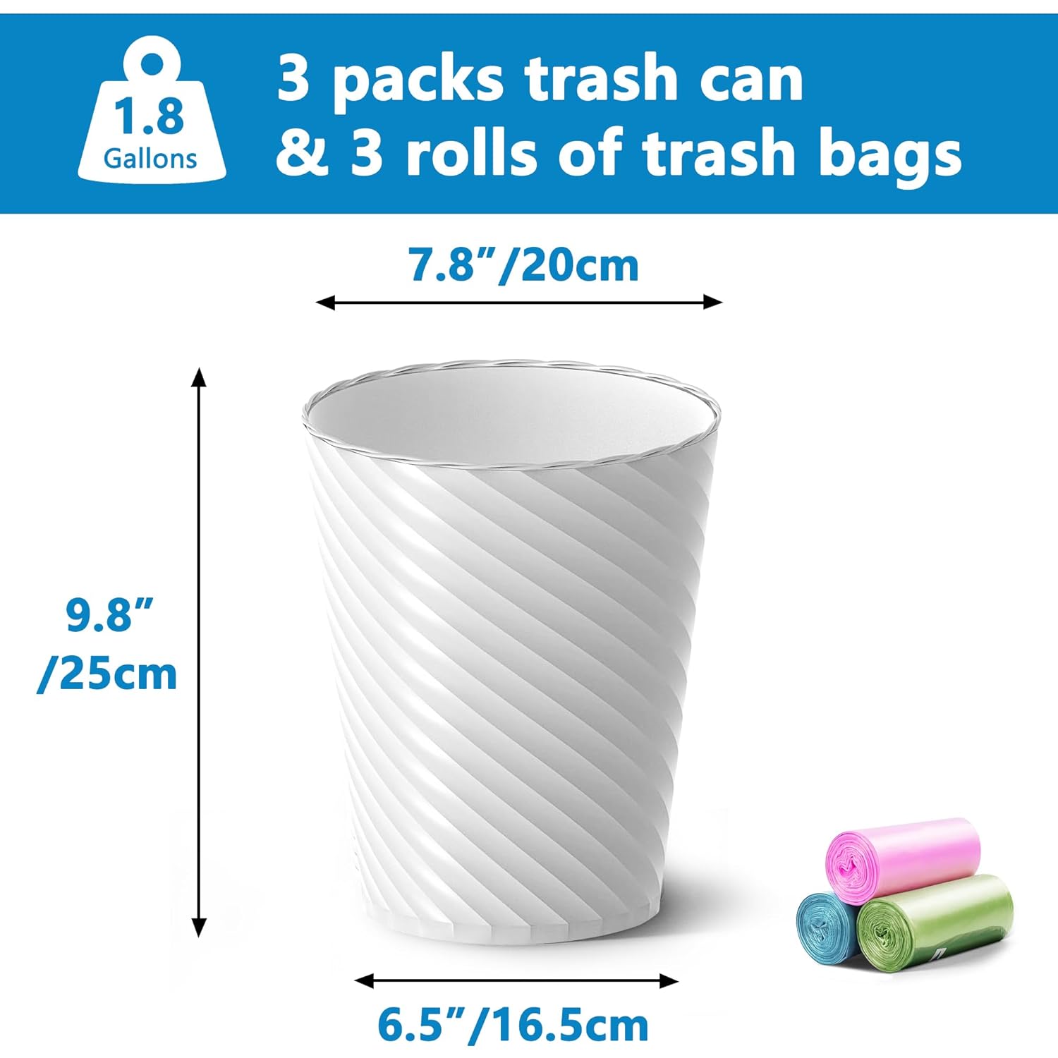 - 【Versatile application】Ideal for a wide range of settings including offices, bathrooms, bedrooms, kitchens, and more, offering convenient waste disposal wherever you need it. Additionally, we've included three rolls of extra-thick garbage bags for your convenience.