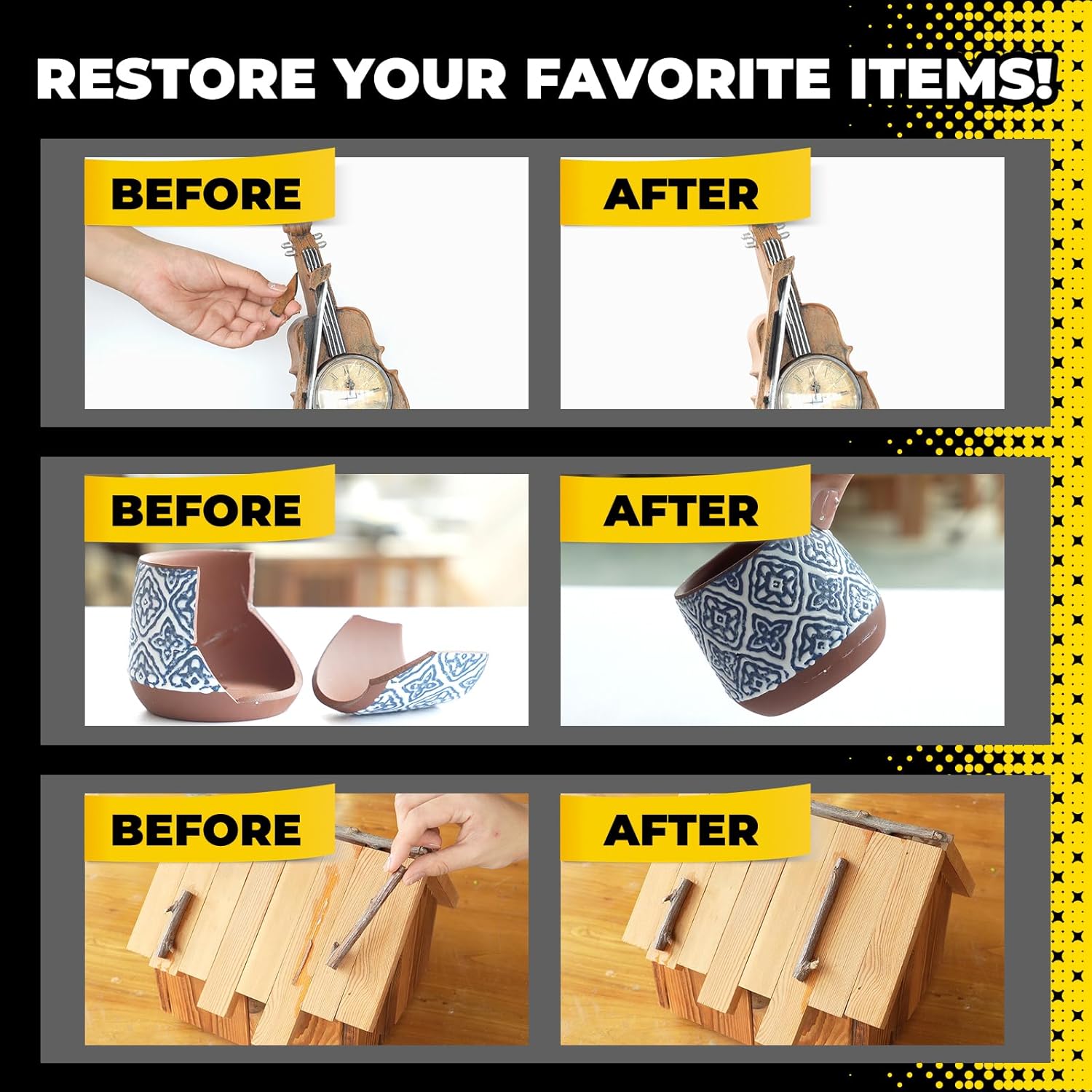 • šŸ› ļø Quick Fixes for Household Repairs: Designed for small household fixes, this super glue bonds effortlessly to ceramic, glass, wood, plastic, and more. Perfect for repairing broken items and restoring them to their original glory with ease.